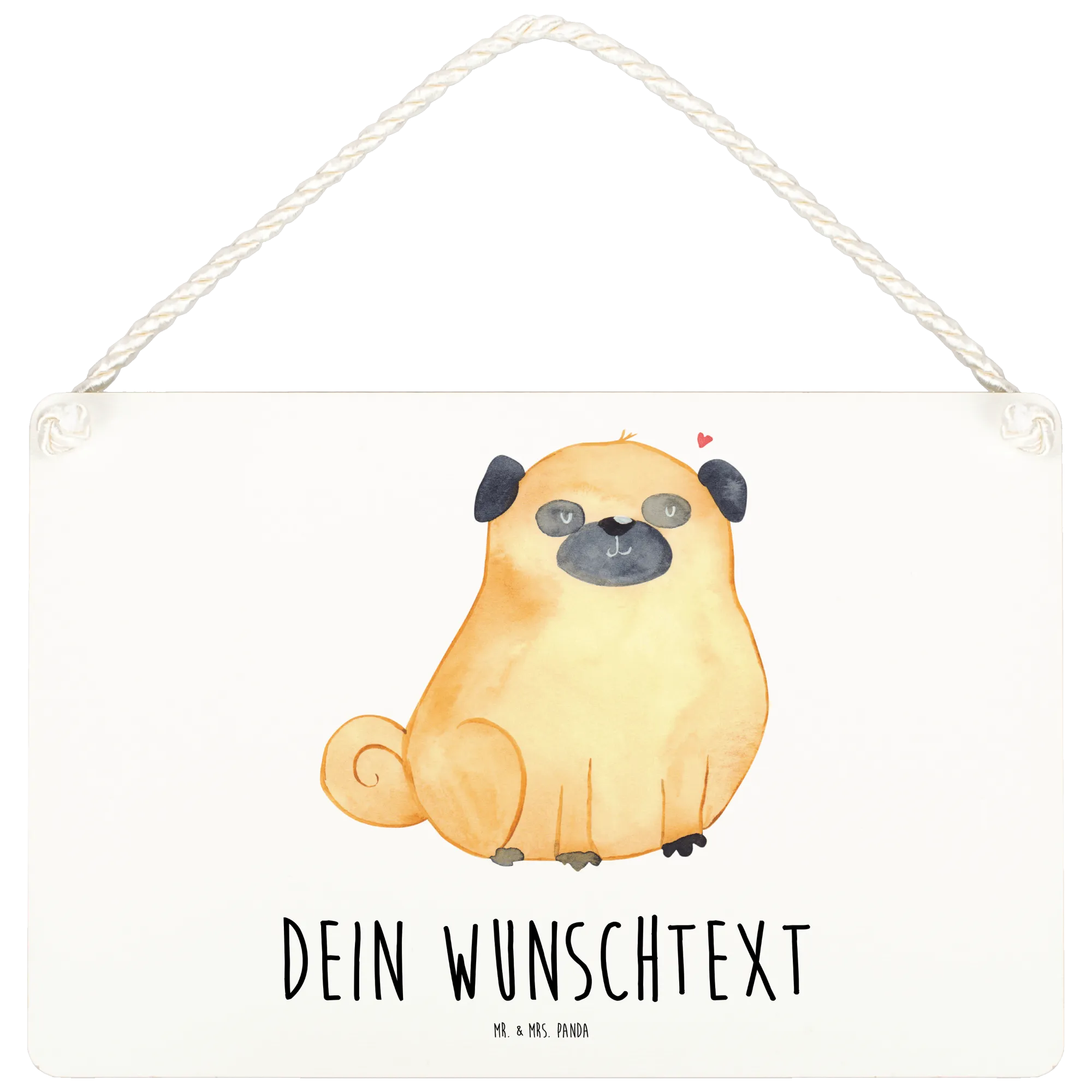 Personalisiertes Deko Schild Mops - DIN A6 - Weiß