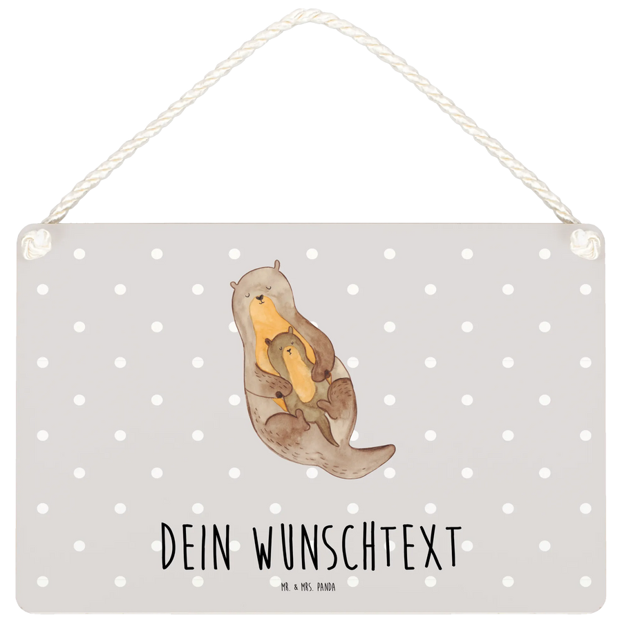 Personalisiertes Deko Schild Otter Kind - DIN A6 - Grau Pastell