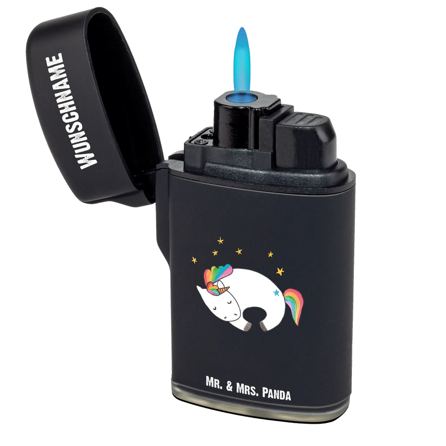 Entdecke das perfekte personalisierte Feuerzeug aus der bezaubernden Einhorn-Kollektion von Mr. & Mrs. Panda! Unser einzigartiges Feuerzeug mit dem traumhaften Motiv 'Einhorn Nacht' ist mehr als nur ein einfacher Gegenstand – es ist ein Stück Magie, das Dich und Deine Liebsten in eine Welt voller Träume und Fantasie entführt.