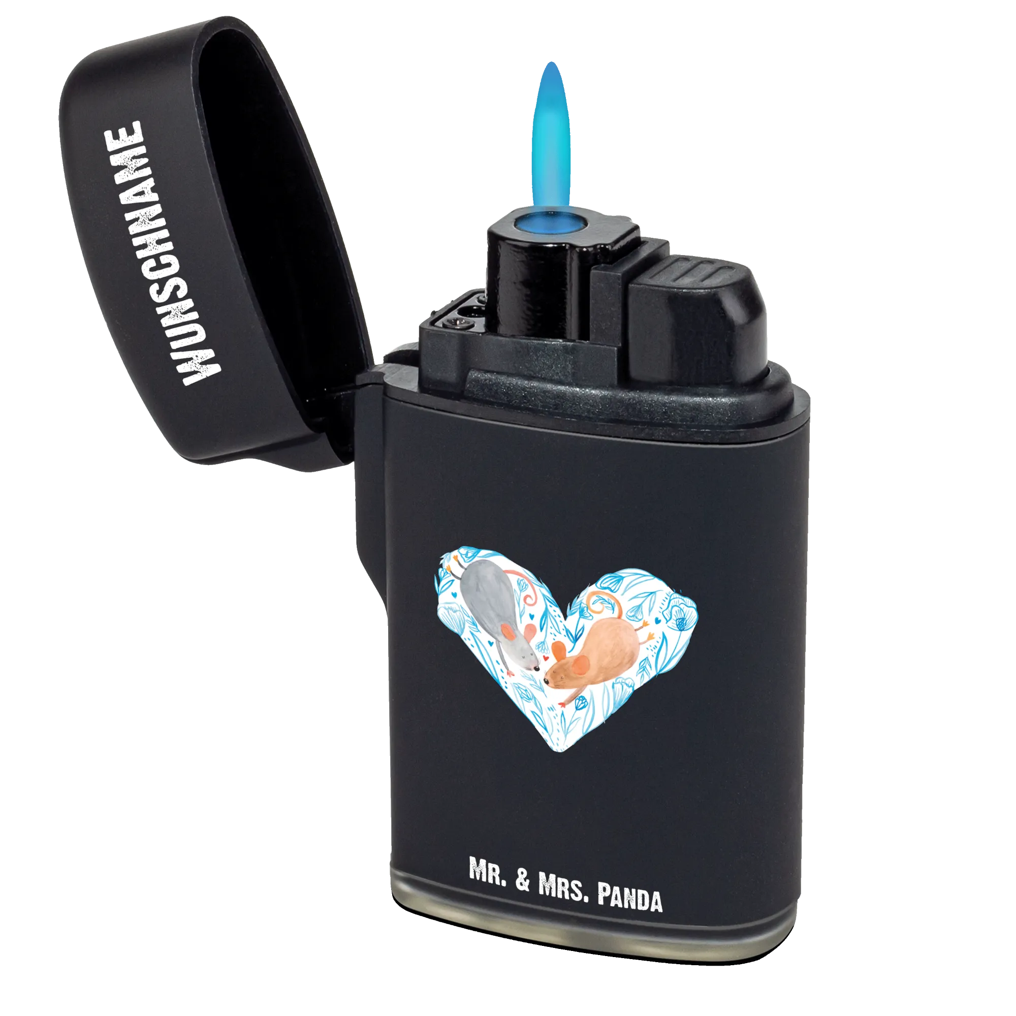 Du suchst nach dem perfekten Geschenk für deinen Lieblingsmenschen? Unser personalisiertes Feuerzeug "Mäuse Herz" aus der Kollektion Liebe ist genau das Richtige! Dieses liebevoll gestaltete Feuerzeug wird nicht nur durch seine Funktionalität überzeugen, sondern auch mit seinem einzigartigen Design. Die beiden niedlichen Mäuse, die in Aquarellfarben gezeichnet sind, zeigen eine Herzform, während der süße Slogan "Wir zwei gegen den Rest der Welt" dein tiefes Gefühl der Verbundenheit ausdrückt.