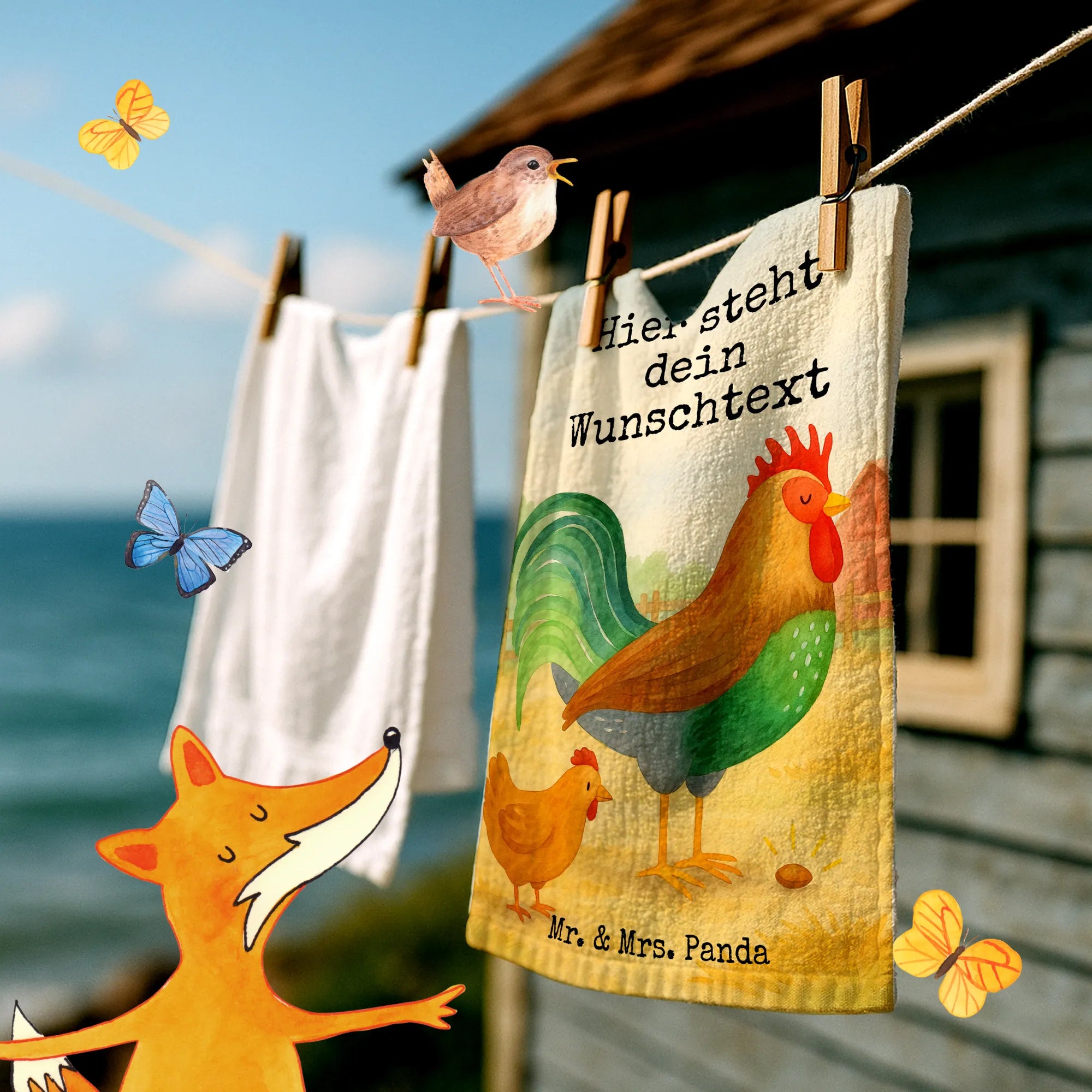 Dieses liebevoll designte Gästehandtuch mit Namen aus der Bauernhof-Kollektion von Mr. & Mrs. Panda bringt Freude ins Badezimmer. Der süße, stolze Hahn mit einem prächtigen Korn und der herzliche Spruch „Wenn du traurig bist, denk daran: wenn ein Hahn ein besonders prächtiges Korn findet, holt er seine Lieblingshenne und schenkt es ihr großzügig. Er ist echt ein feiner Kerl.“ schenken jedem Gast ein Lächeln.