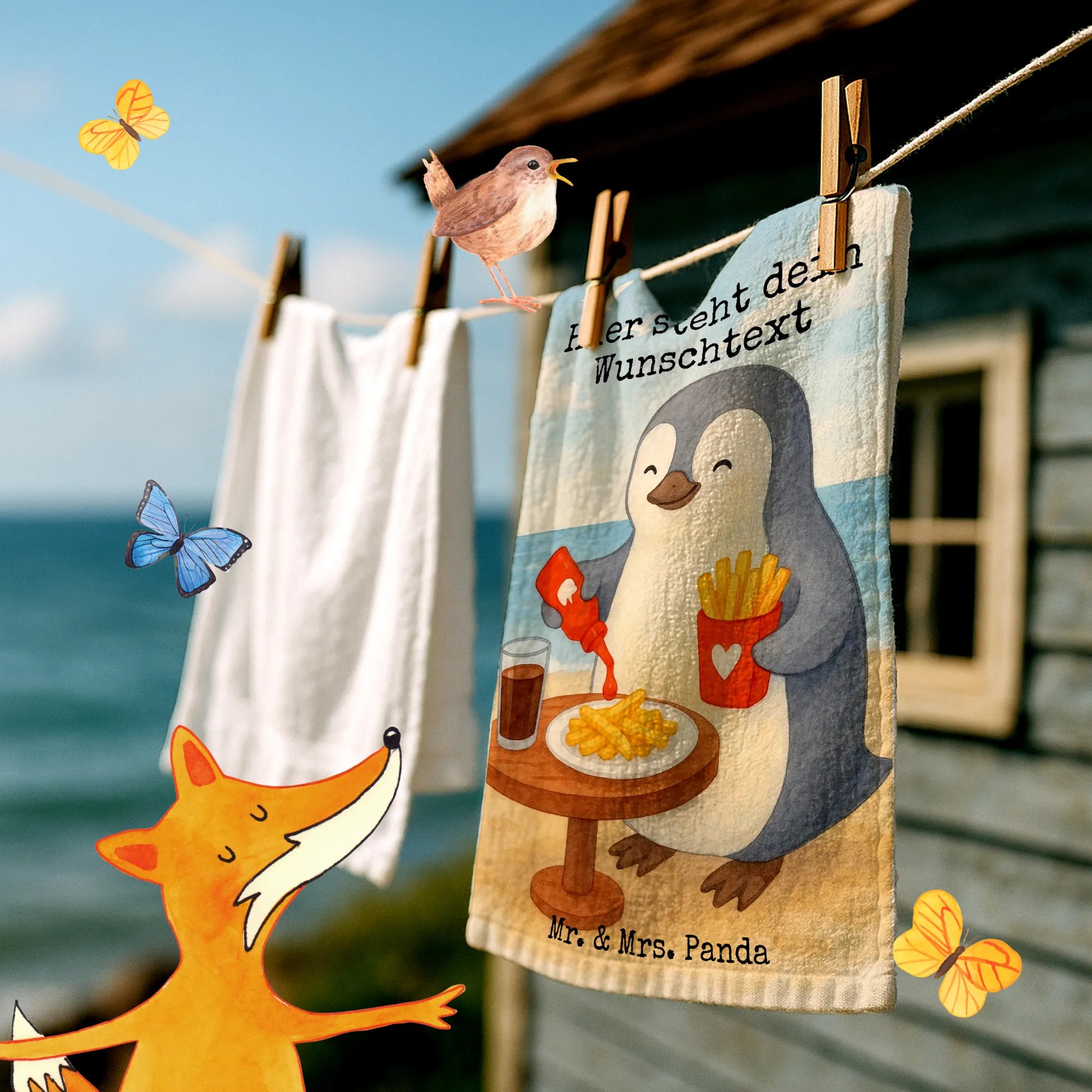 Personalisiertes Gästehandtuch Pinguin Pommes Design