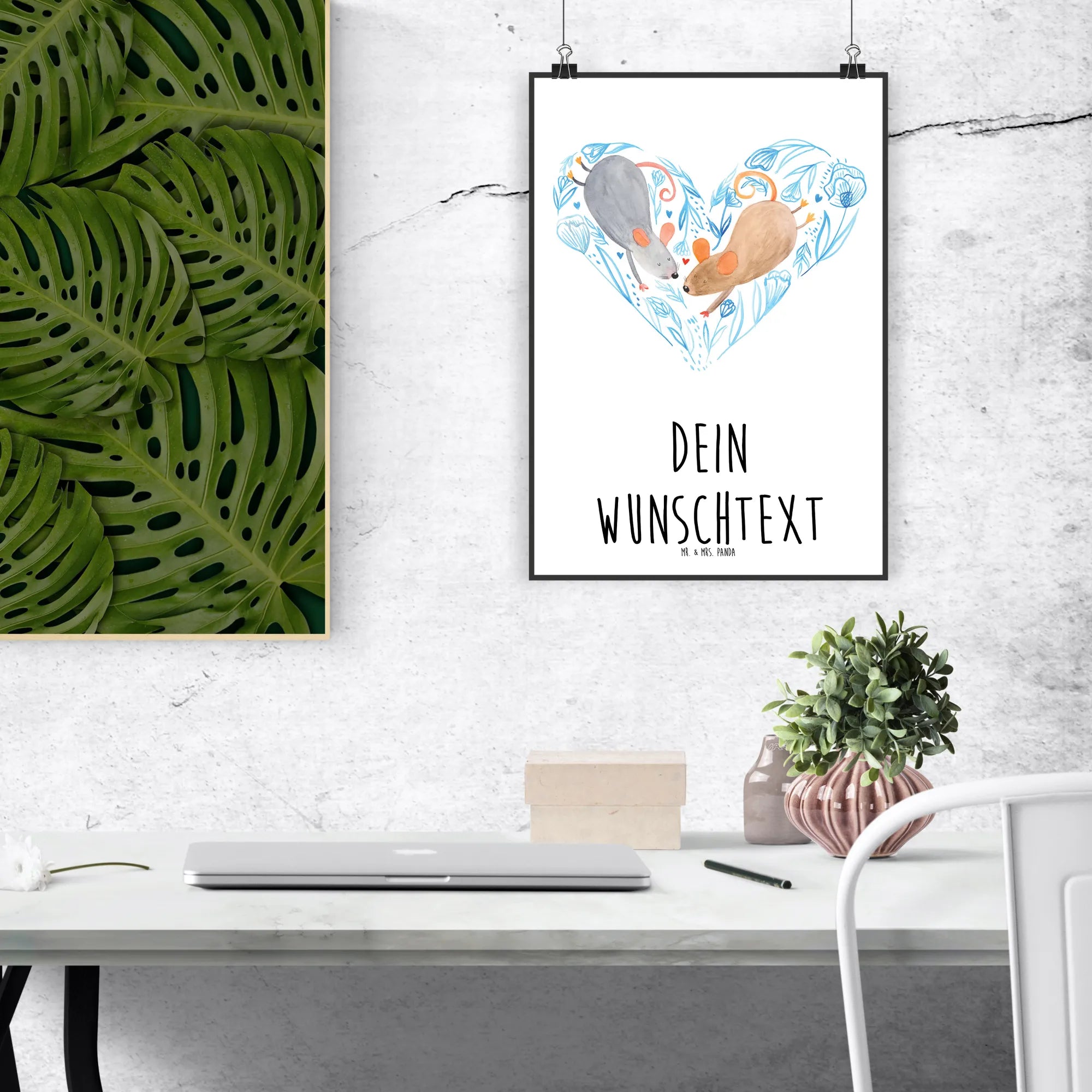 Das personalisierte Poster "Mäuse Herz" von Mr. & Mrs. Panda ist der perfekte Ausdruck deiner Liebe! Ob für den Jahrestag, die Verlobung, als Hochzeitsgeschenk oder einfach nur so für deinen Lieblingsmenschen – dieses Poster ist ein ganz besonderes Liebesgeschenk.