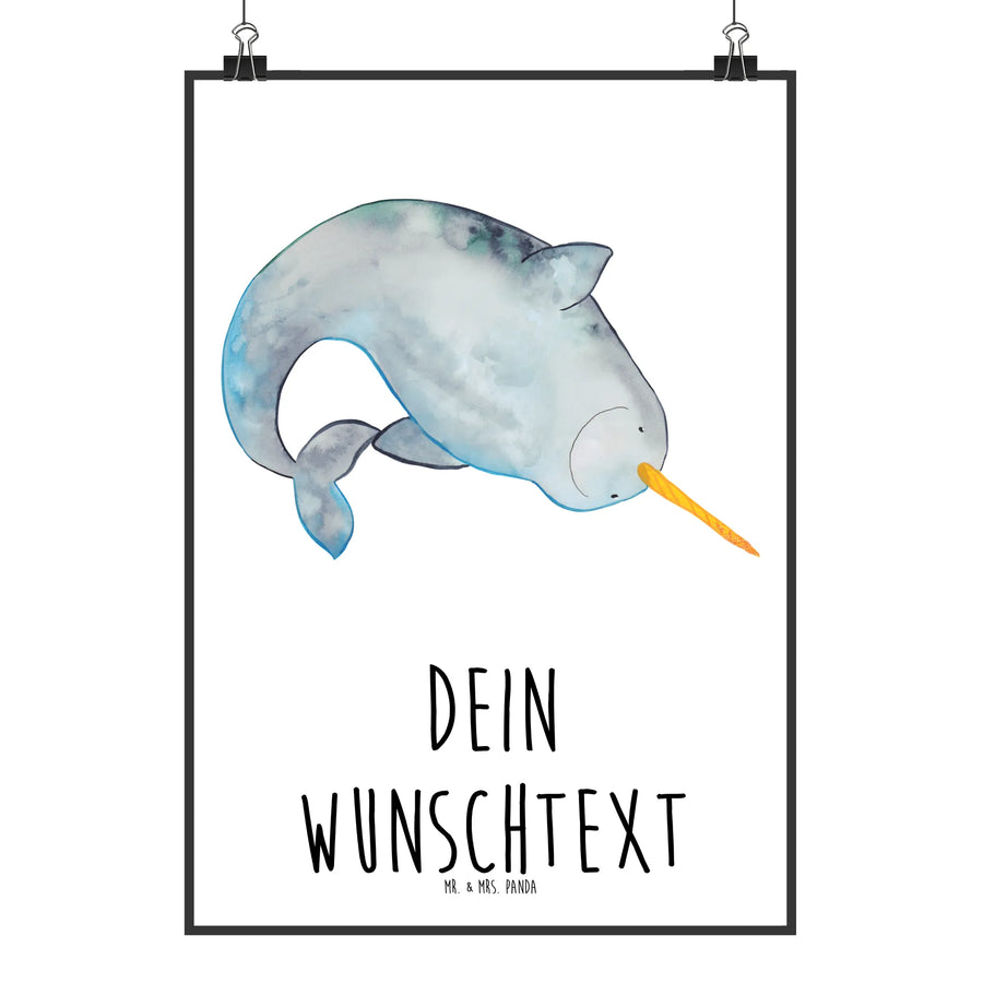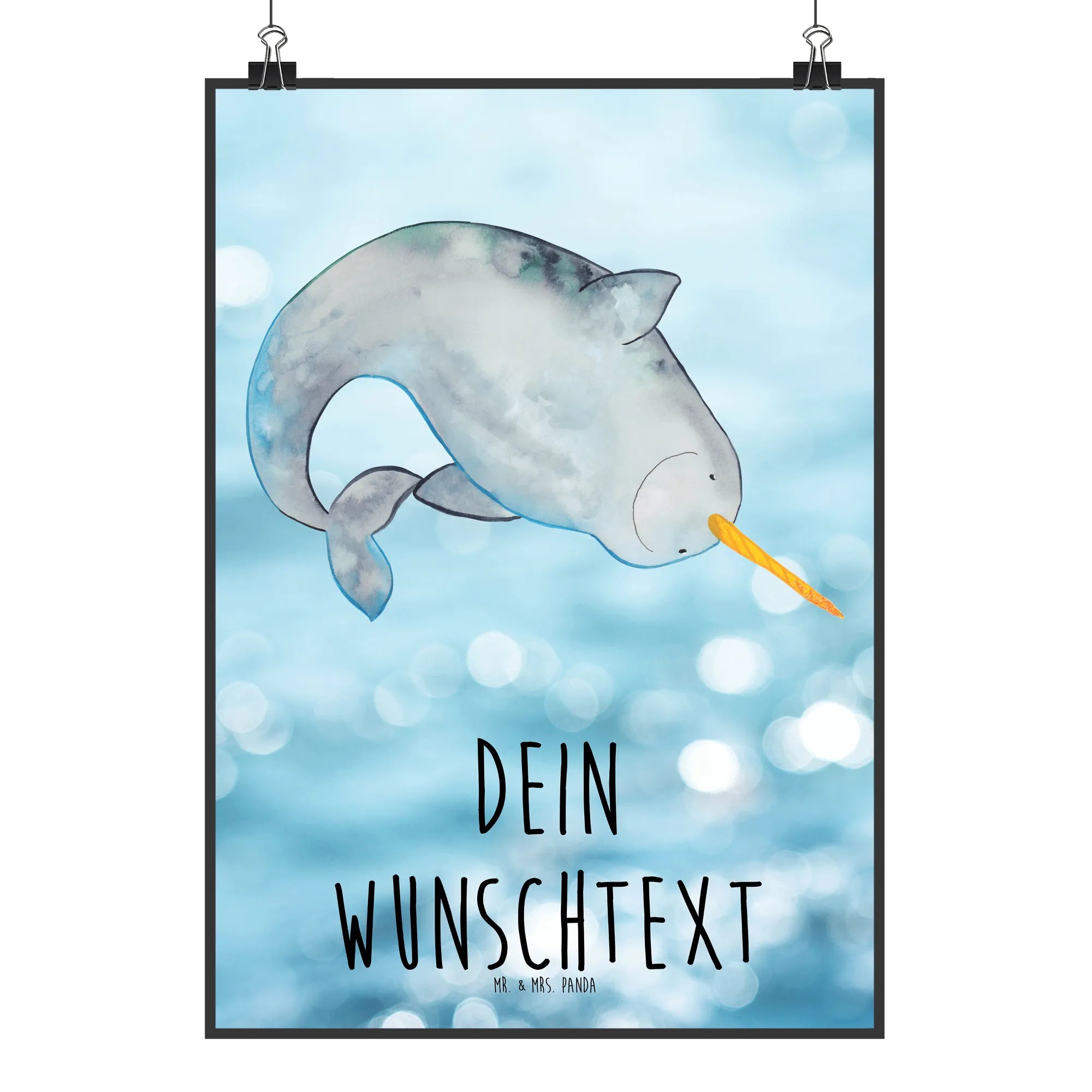 Die liebevoll handgezeichnete Illustration zeigt einen freundlichen Narwal, dessen leuchtende Farben und weiche Formen sofort ins Auge fallen. Bei Mr. & Mrs. Panda kannst du das Poster ganz individuell gestalten und deinen Wunschtext oder Namen hinzufügen - so wird es zu einem einzigartigen Kunstwerk, das jeden Raum aufwertet.