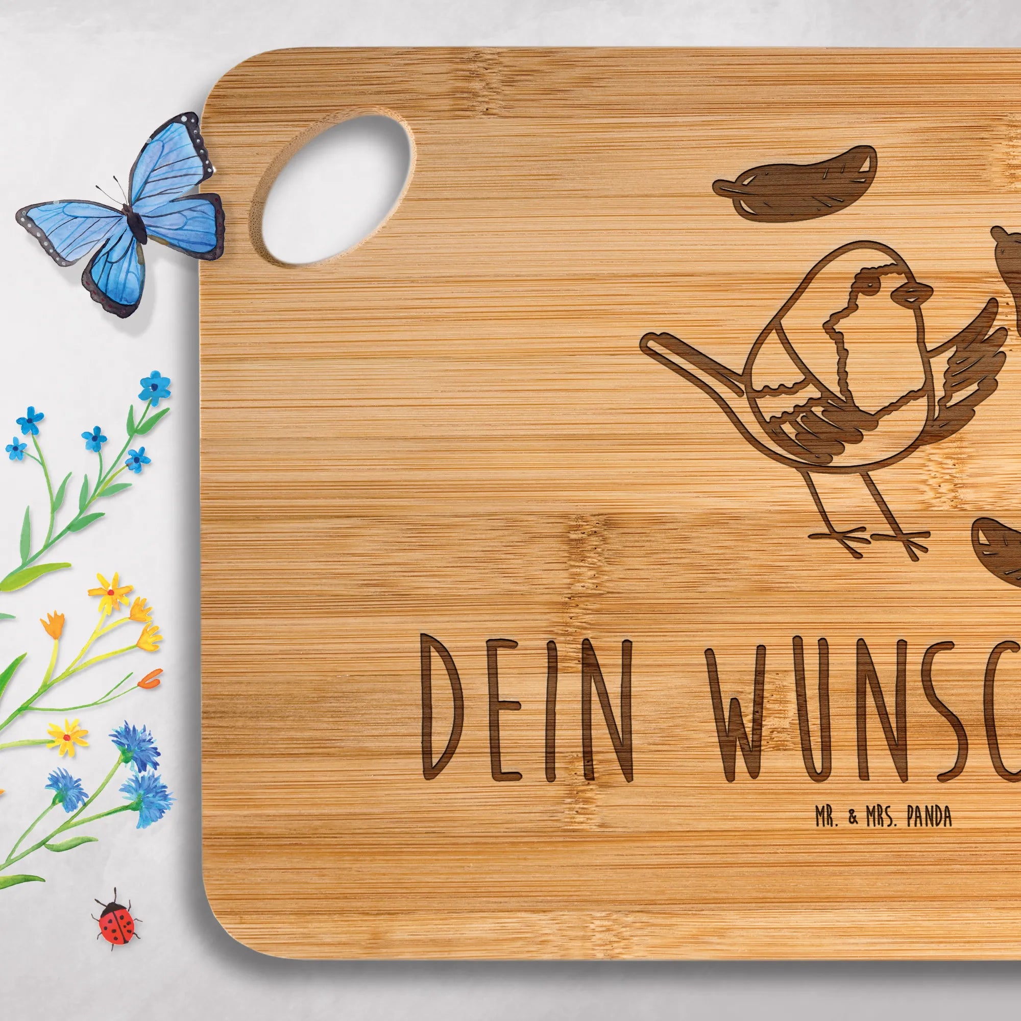 Personalisiertes Schneidebrett Rotkehlchen Federn – Mr. & Mrs. Panda