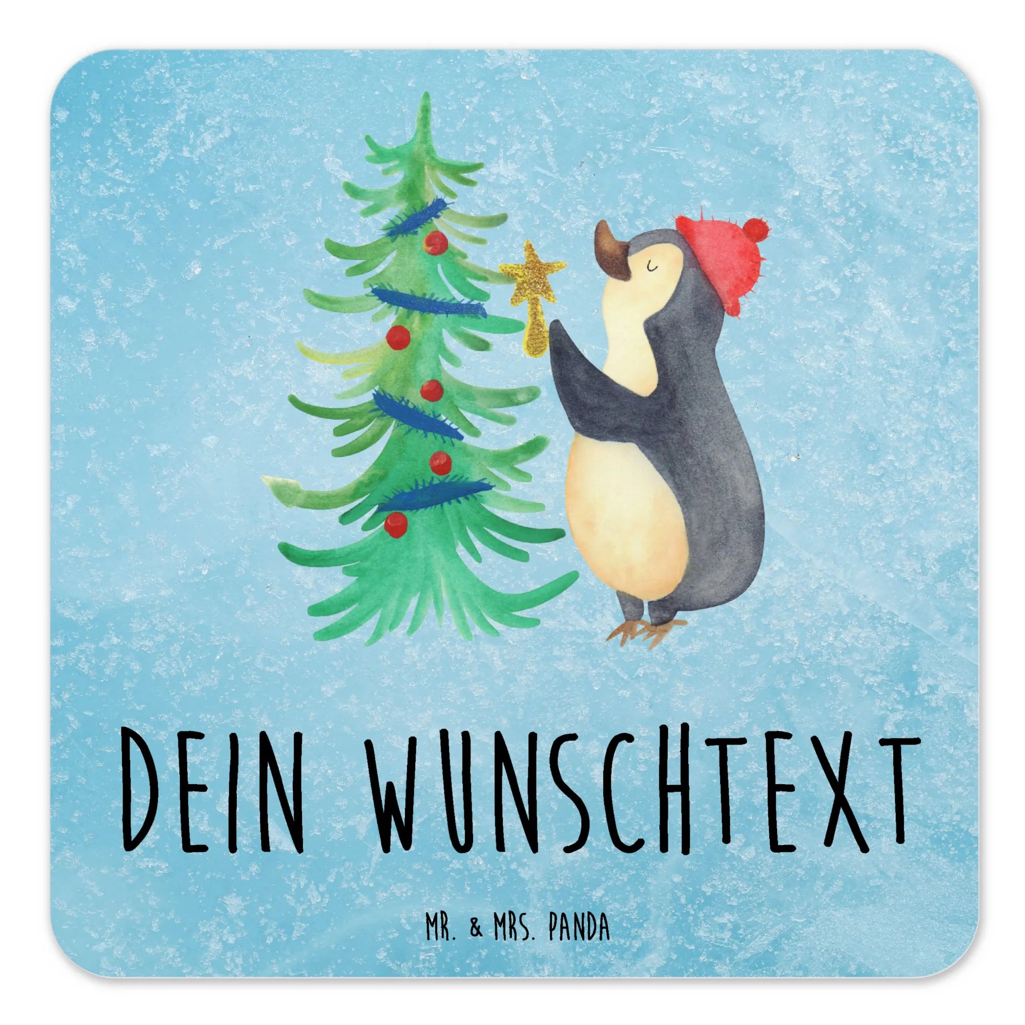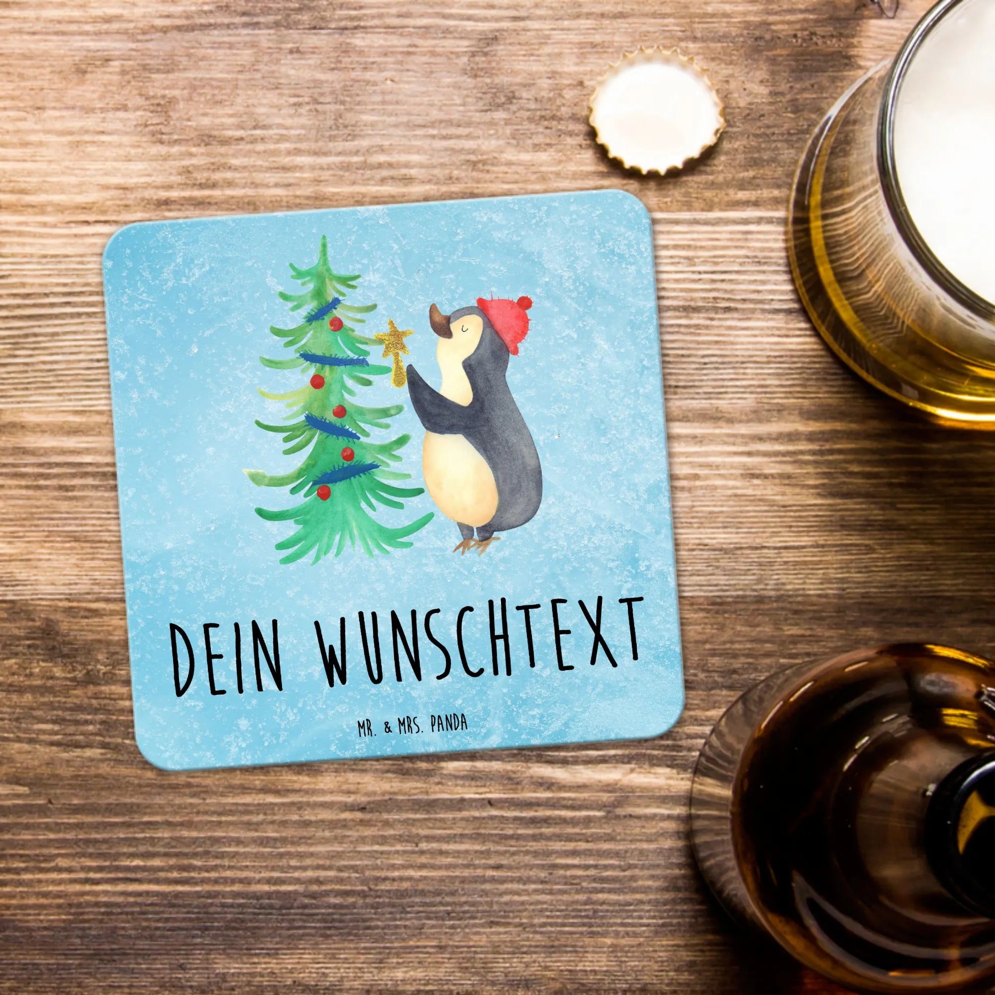 Personalisiertes Untersetzer Set Pinguin Weihnachtsbaum - 15er Set - Eisblau