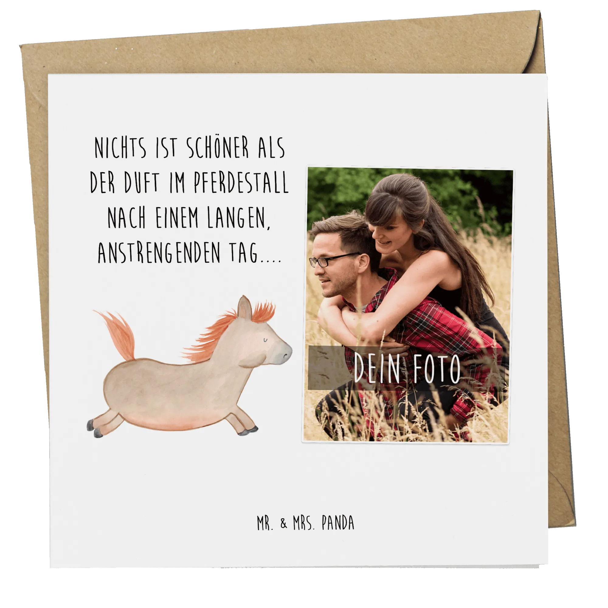 Personalizowana karta Deluxe ze zdjęciem koń skakać - biały