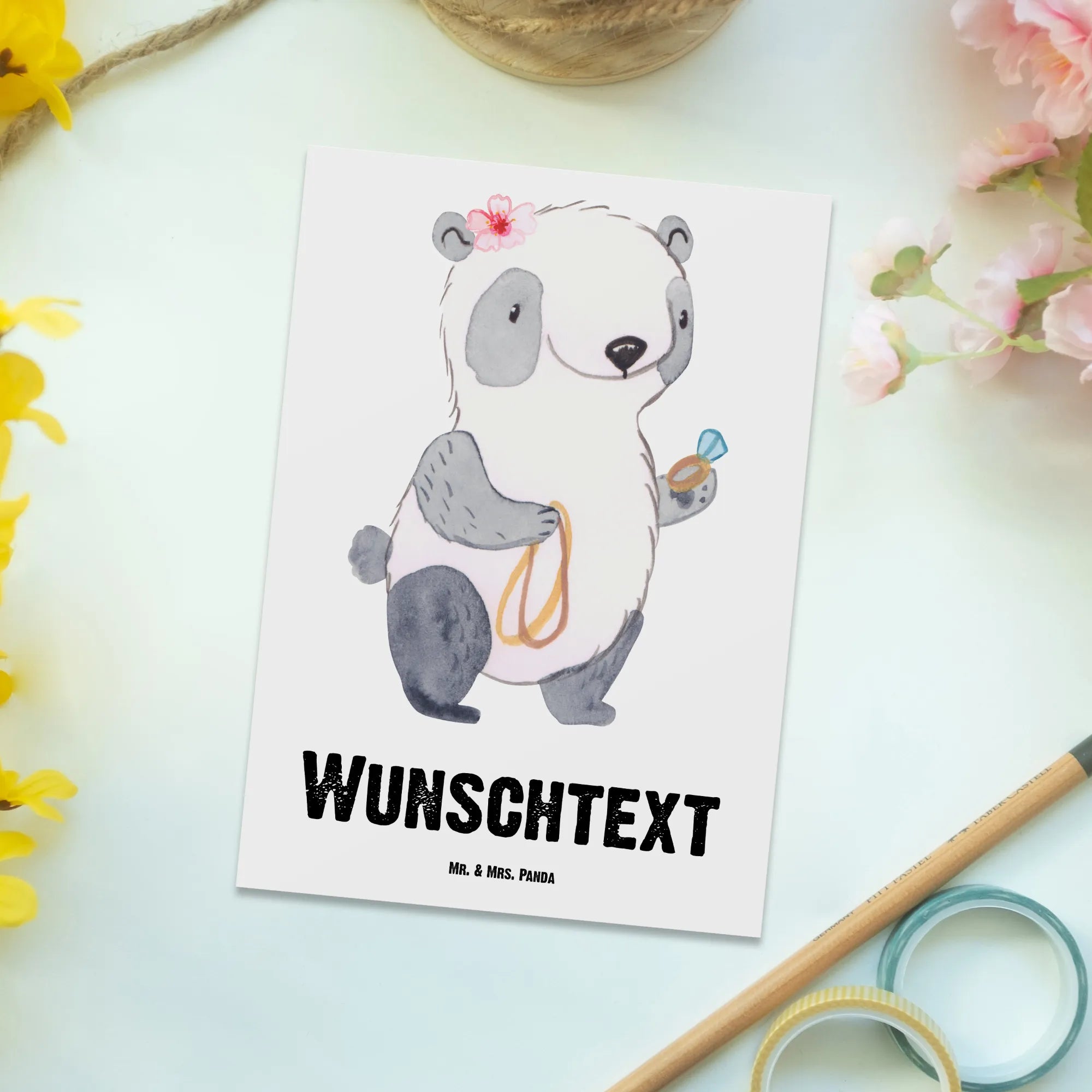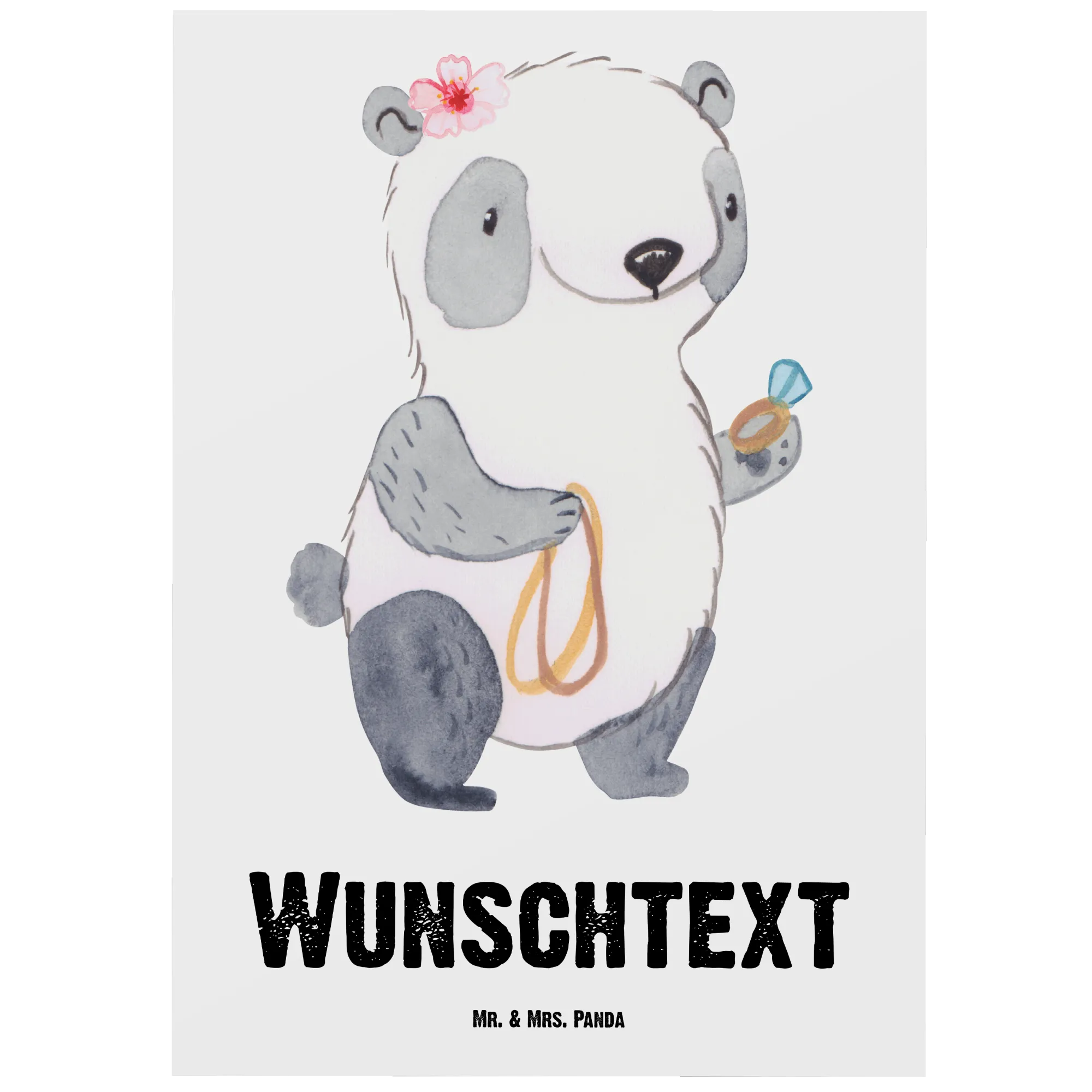 Personalizowana kartka pocztowa Sprzedawczyni biżuterii Serce – Mr. & Mrs. Panda