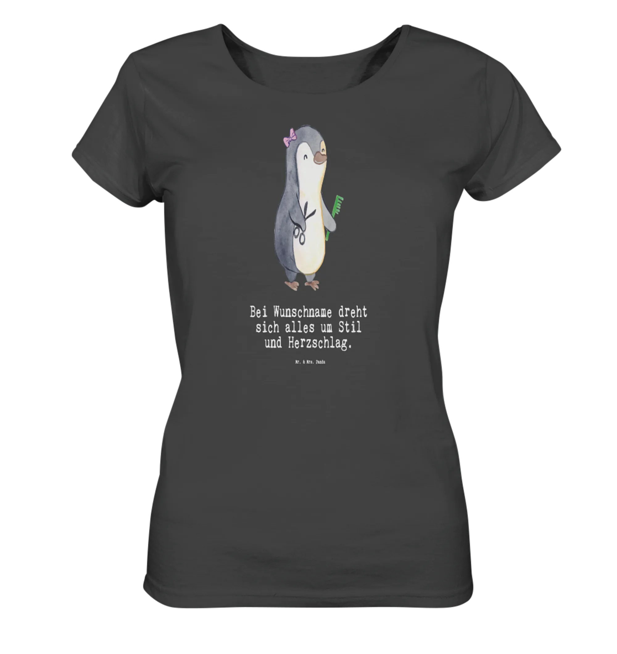 Das Personalisiertes Shirt Damen mit dem Herzen für Hairstylistinnen ist das perfekte Geschenk für all die leidenschaftlichen Friseurinnen da draußen! Mit dem liebevollen Motiv, das eine süße, weibliche Pinguin-Dame zeigt, die stolz ihre Position als Hairstylistin verkörpert, bringst du sicher ein Lächeln auf die Gesichter deiner Freundinnen, Kolleginnen und Mitarbeiterinnen.