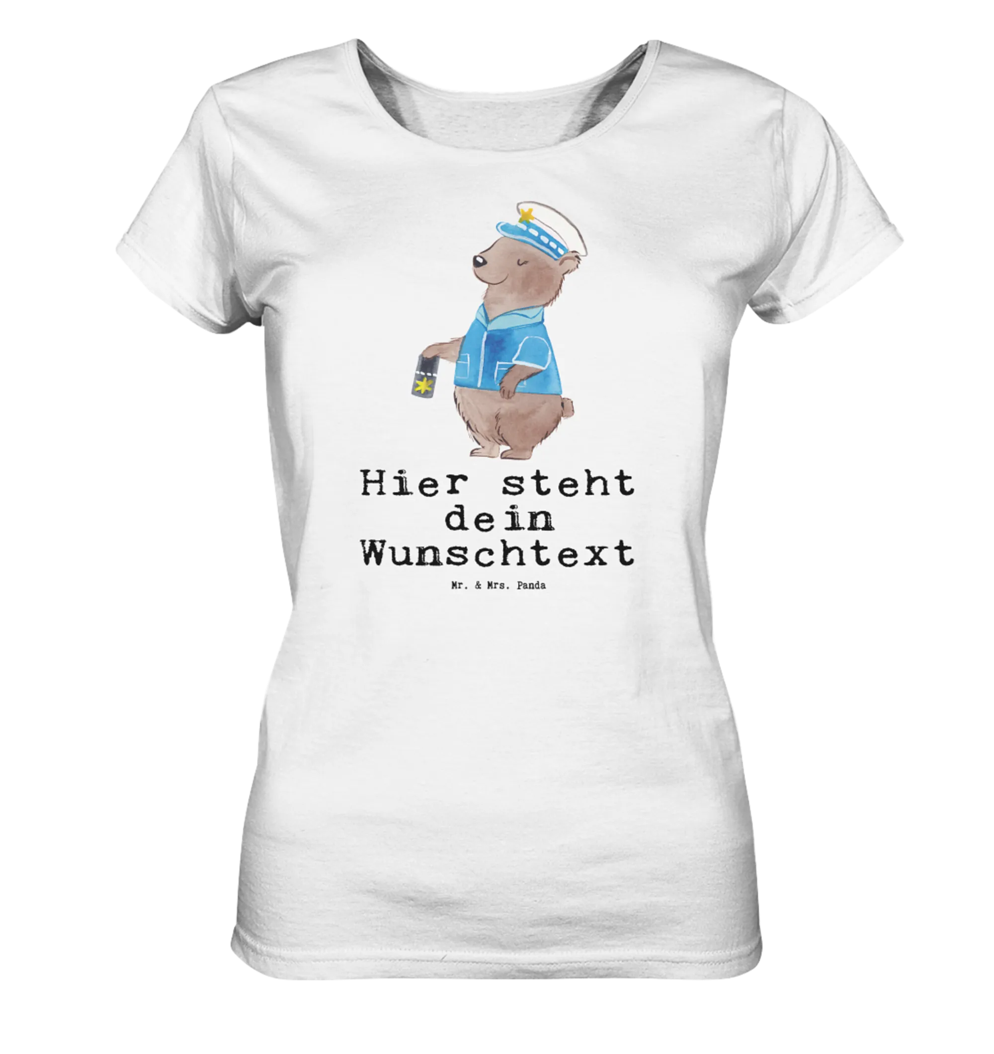 Entdecke unser personalisiertes Shirt für Damen mit dem herzerwärmenden Motiv "Polizistin mit Herz" aus der einzigartigen Berufe Kollektion von Mr. & Mrs. Panda!