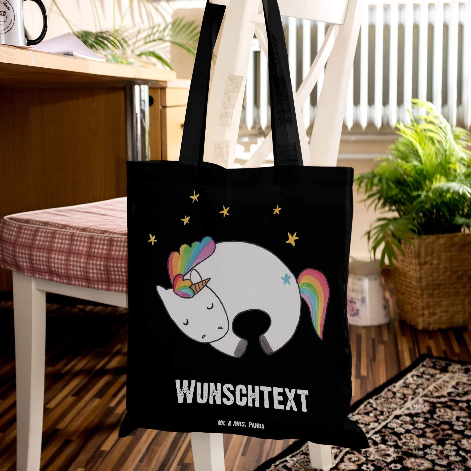 Die personalisierte Tragetasche "Einhorn Nacht" von Mr. & Mrs. Panda ist das perfekte Geschenk für alle Einhornliebhaber und Traumtänzer. Mit ihrem zauberhaften Design, das ein schlafendes Einhorn unter einem Sternenhimmel zeigt, entführt sie in eine Welt voller Magie und Träume. Diese Tragetasche ist nicht nur schön, sondern auch praktisch – hergestellt aus 100% hochwertiger Baumwolle mit einer Grammatur von 140 g/m², ist sie robust und gleichzeitig leicht. Die langen Tragegriffe von 70 cm bieten einen bequemen Tragekomfort, egal ob beim Einkaufen, im Beruf oder im Alltag.