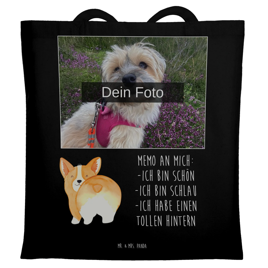 Personalizowana torba na zdjęcia Corgi tyłek - Czarny