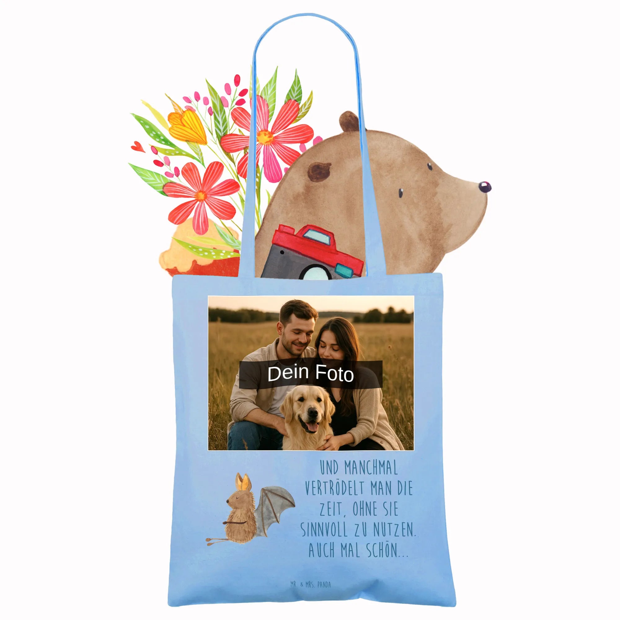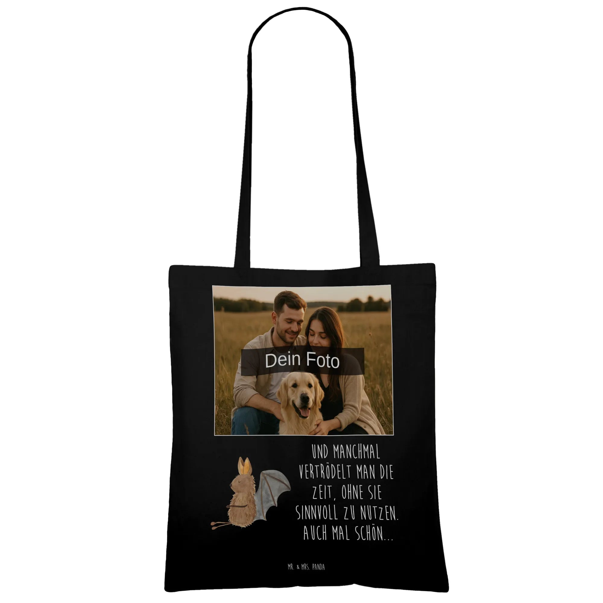 Personalizowana torba na zdjęcia Nietoperz siedzenie - Czarny