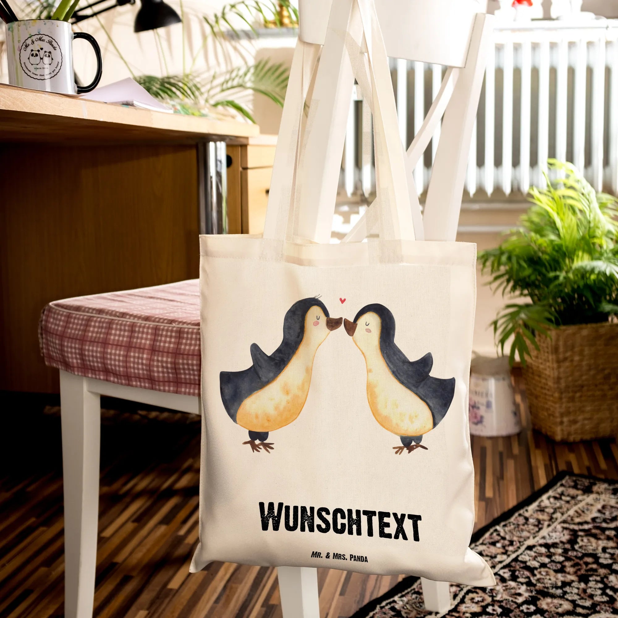 Die personalisierte Tragetasche mit dem süßen Motiv "Pinguin Liebe" von Mr. & Mrs. Panda ist das perfekte Geschenk für alle Verliebten. Ob für deinen Freund, deine Freundin, Verlobte oder deinen Verlobten – diese Tasche bringt das Herz zum Schmelzen! Mit einer hochwertigen Baumwollverarbeitung und einem bezaubernden Motiv ist sie nicht nur praktisch, sondern auch ein wunderschöner Liebesbeweis.