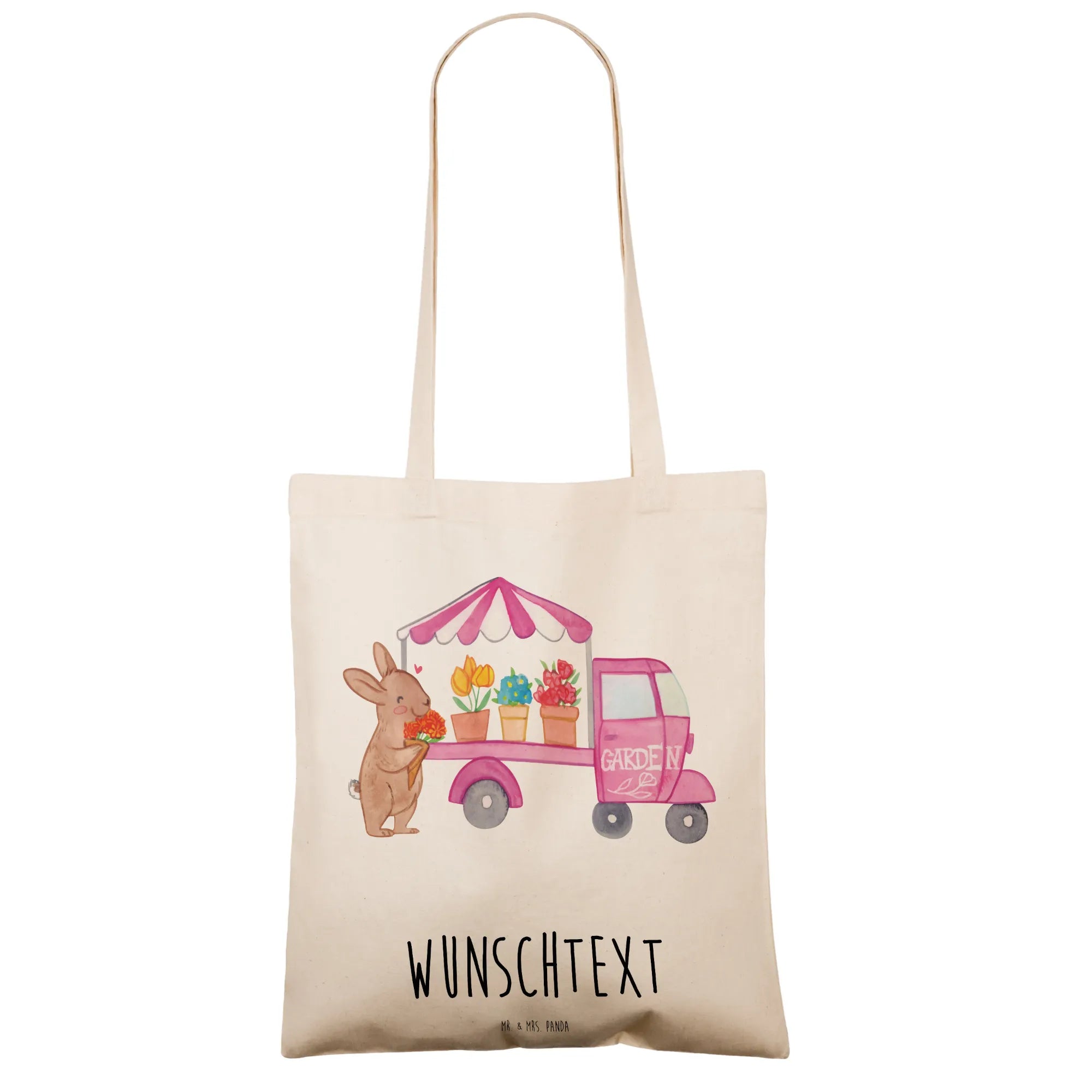 Die personalisierte Tragetasche "Osterhase Blumenwagen" von Mr. & Mrs. Panda ist das perfekte Geschenk für jeden, der das Osterfest liebt.
