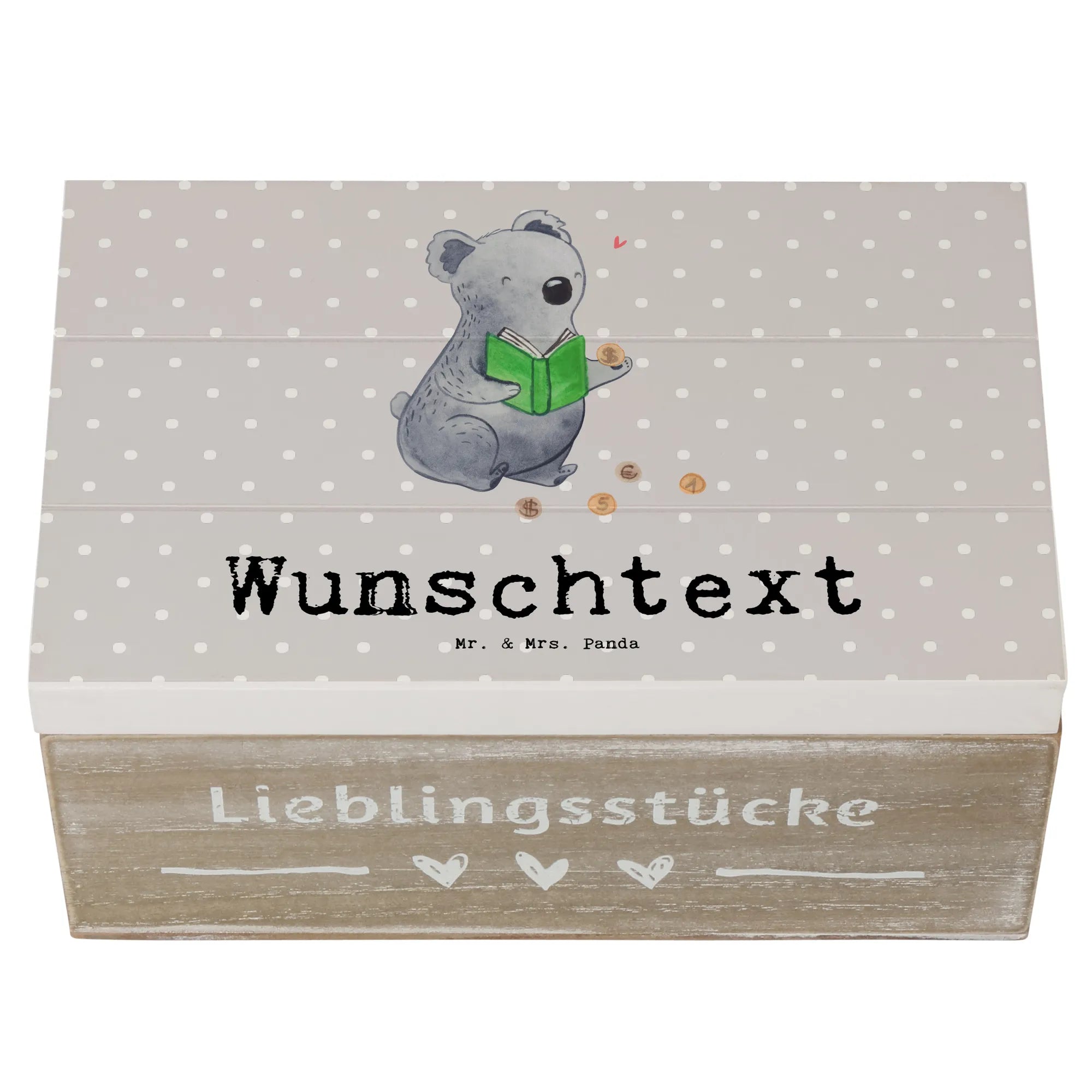Personalizowane drewniane pudełko Koala Zbieranie monet - 22 x 15 cm - biały