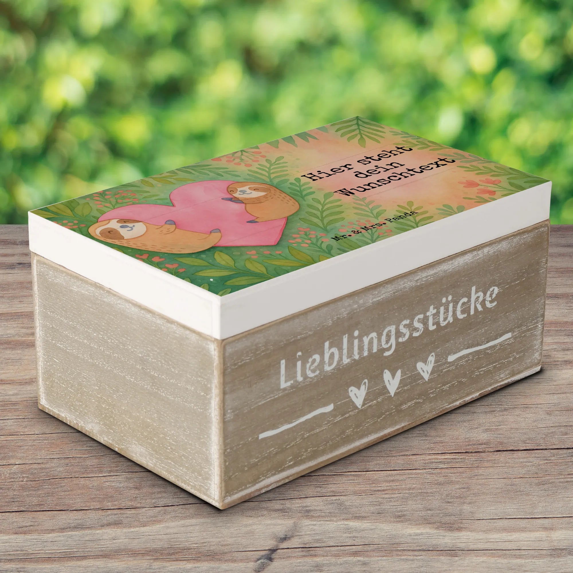 Personalizowane drewniane pudełko leniwce Serce Design - 22 x 15 cm