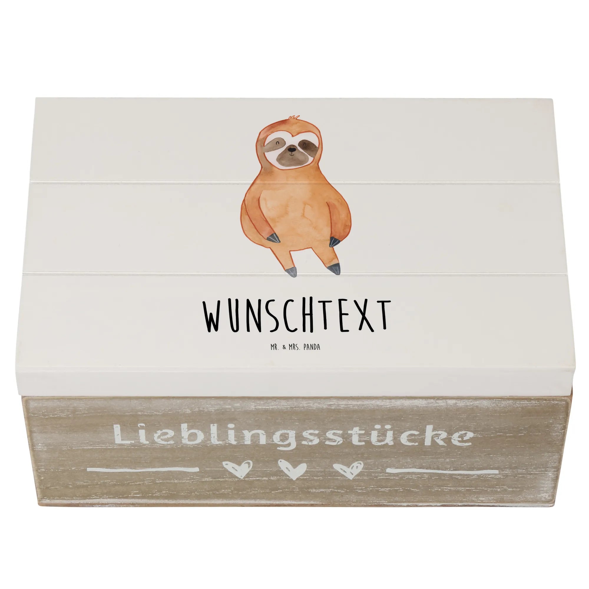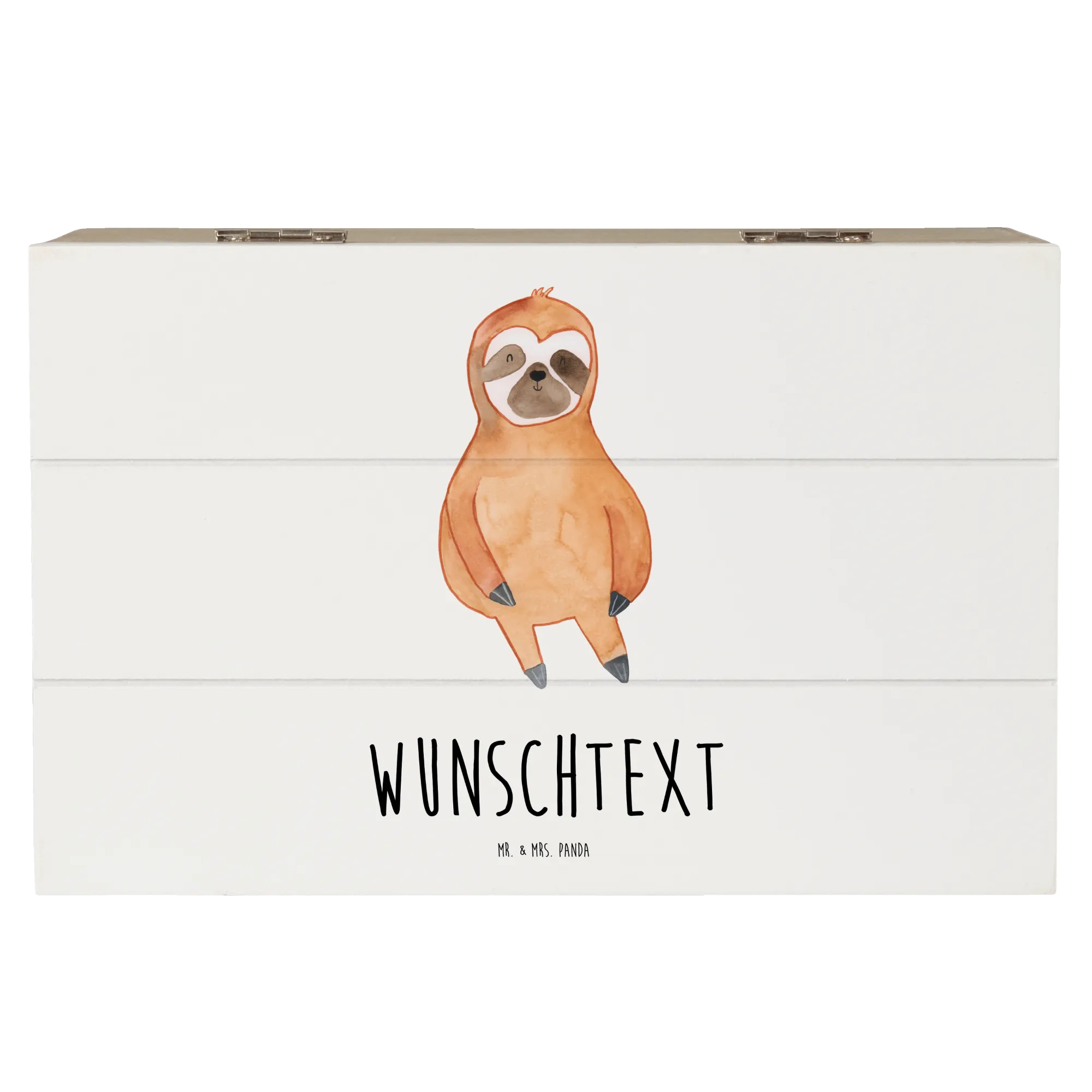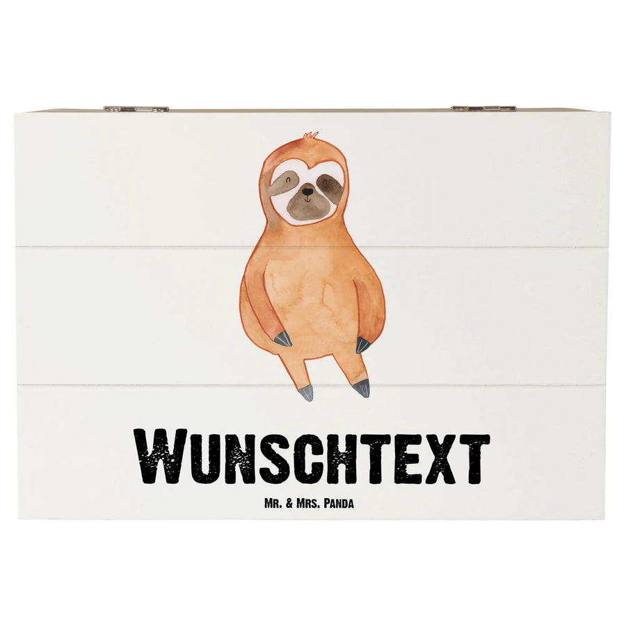 Personalizowane drewniane pudełko leniwiec Zadowolony - 22 x 15 cm - Biały