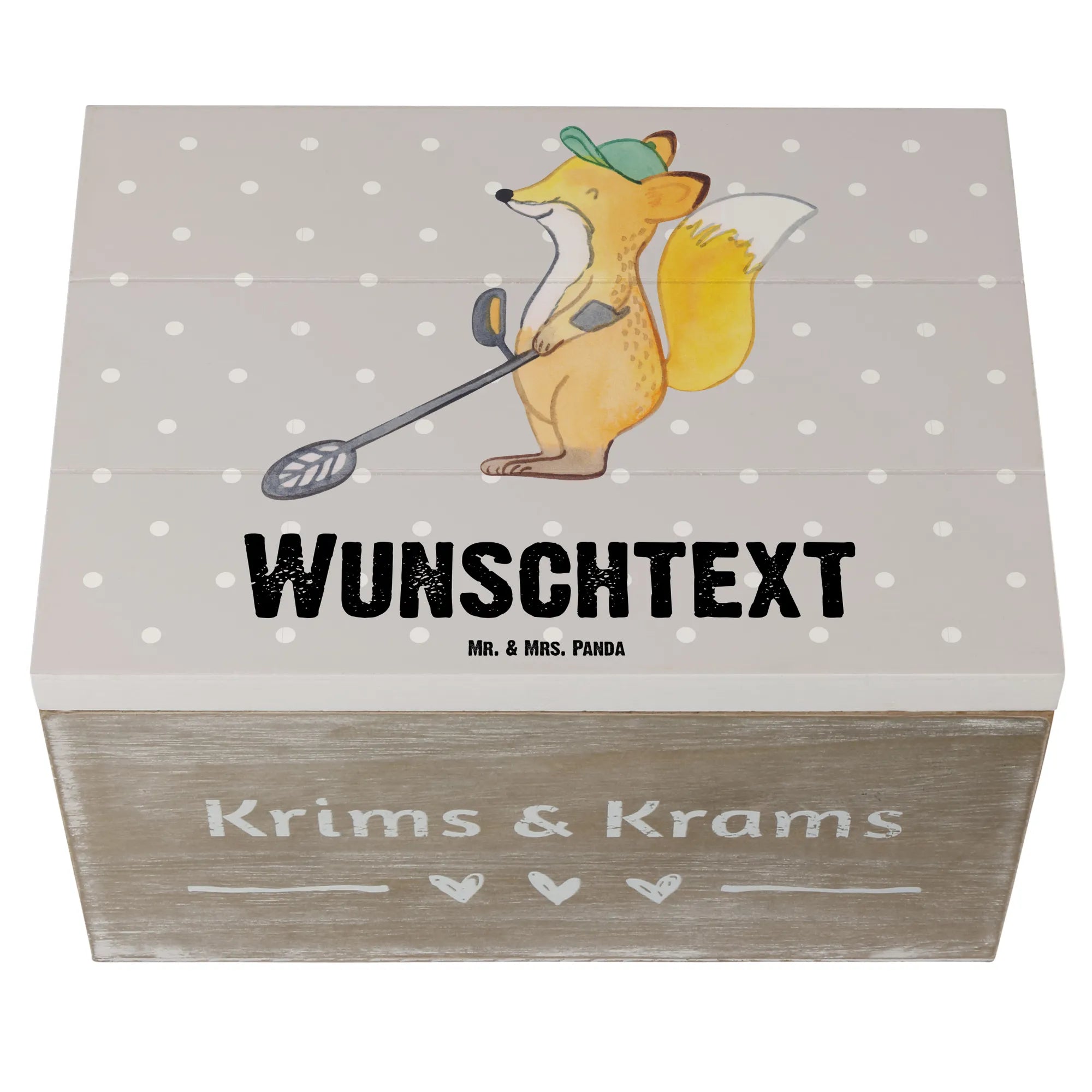 Personalizowane drewniane pudełko Lis detektor metali - 22 x 15 cm - biały