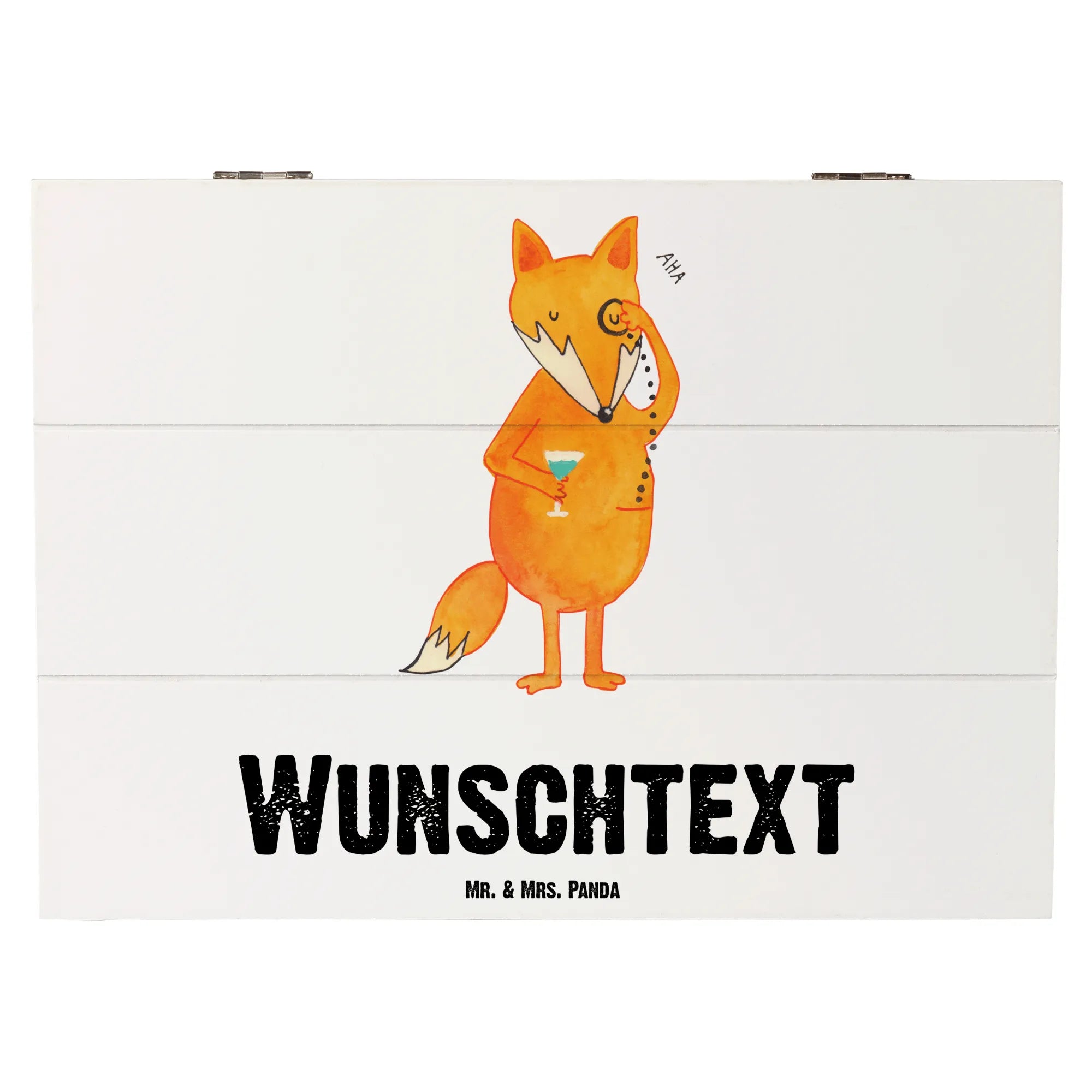 Personalizowane drewniane pudełko lis Pan - 22 x 15 cm - biały