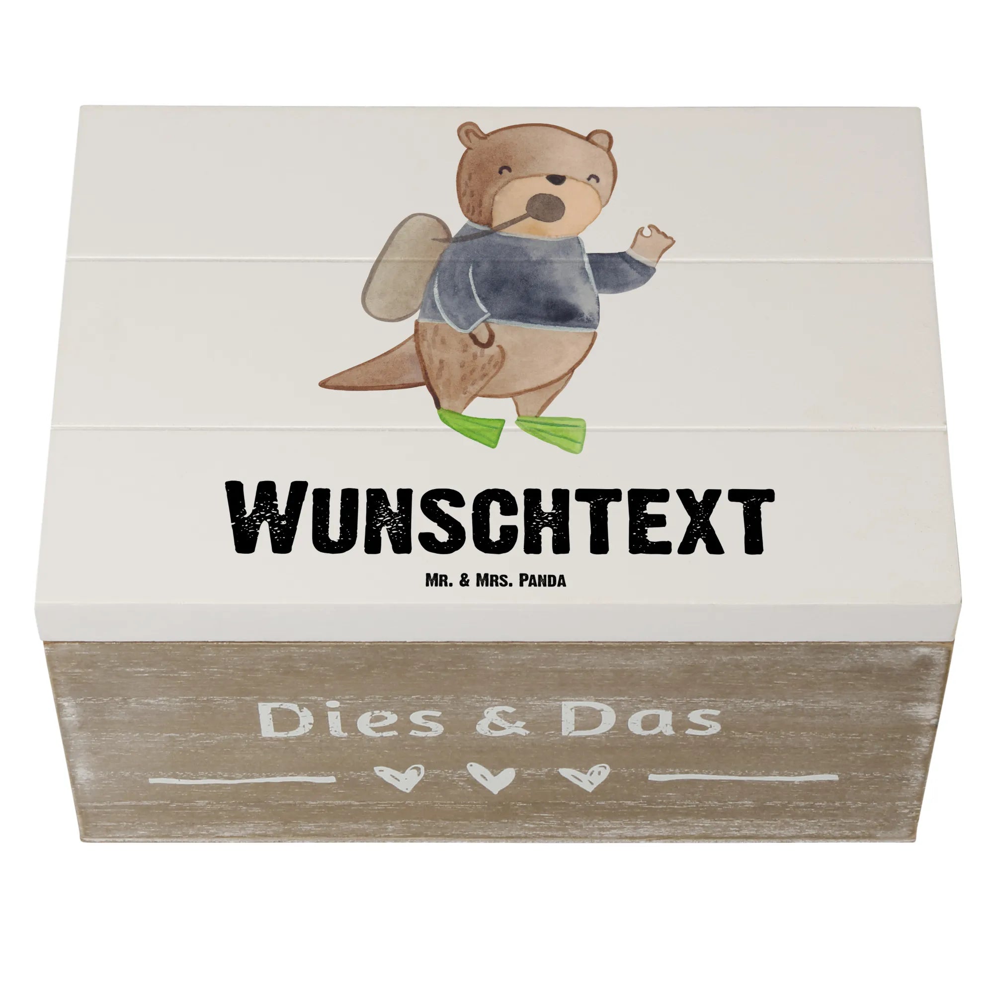 Personalizowane drewniane pudełko nurek serce - 22 x 15 cm - biały