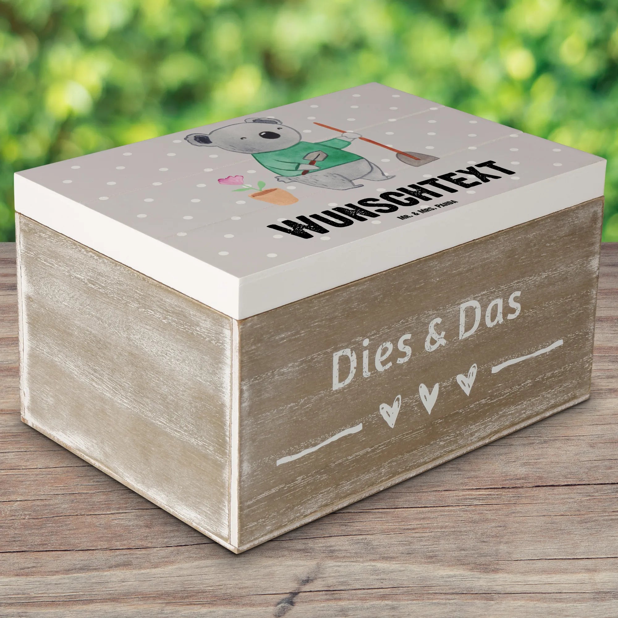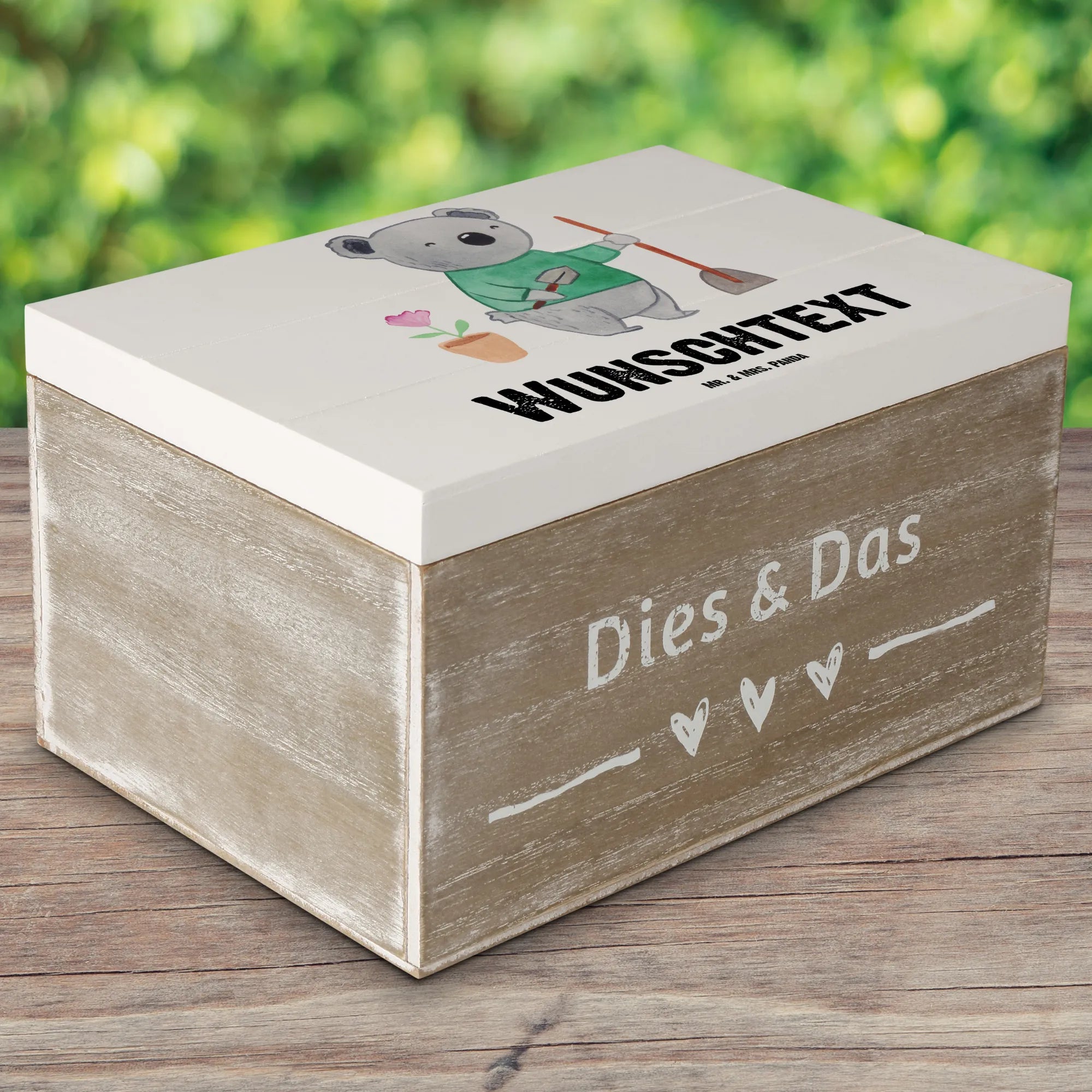 Personalizowane drewniane pudełko ogrodnik serce - 22 x 15 cm - Biały