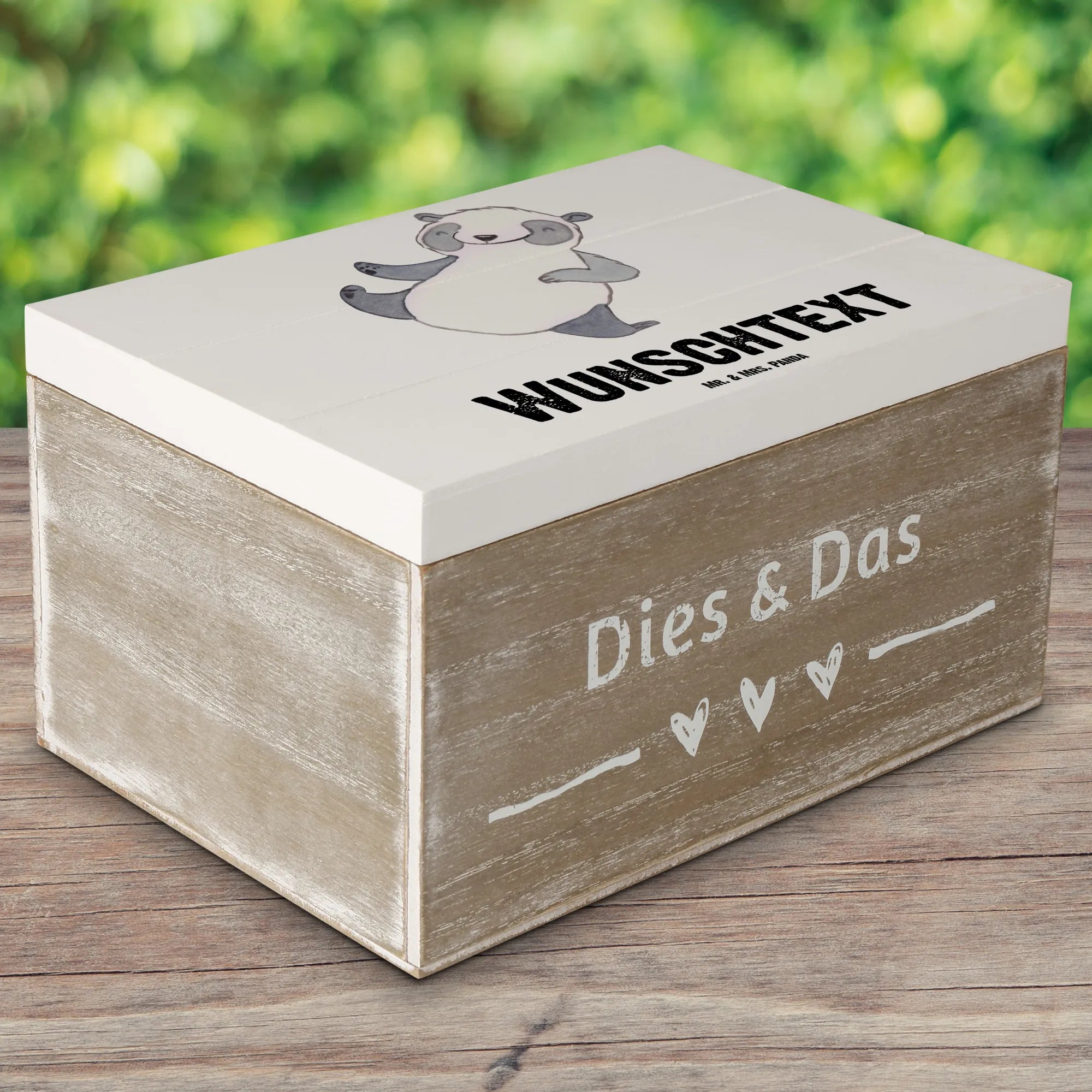 Personalizowane drewniane pudełko Panda sztuka walki - 22 x 15 cm - biały
