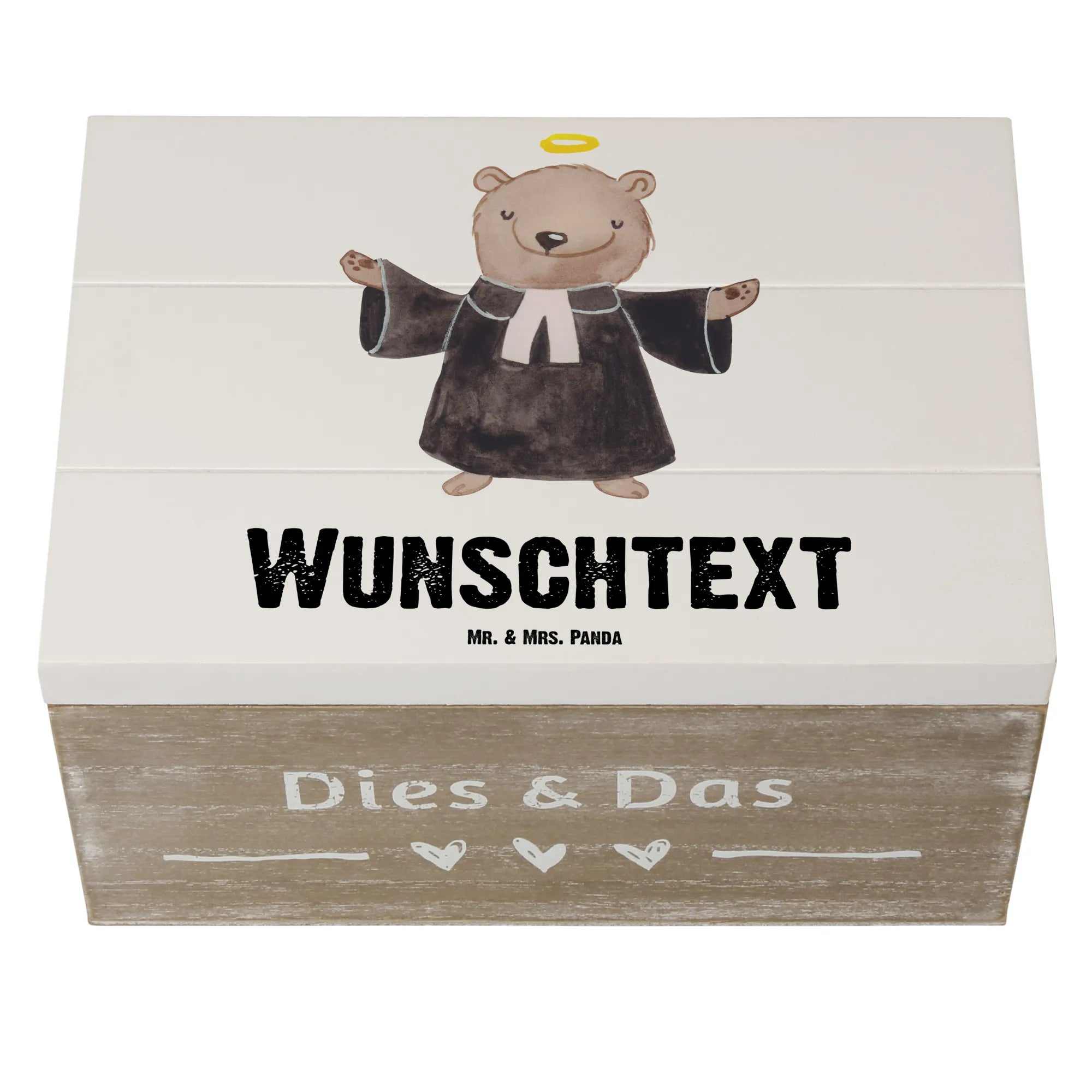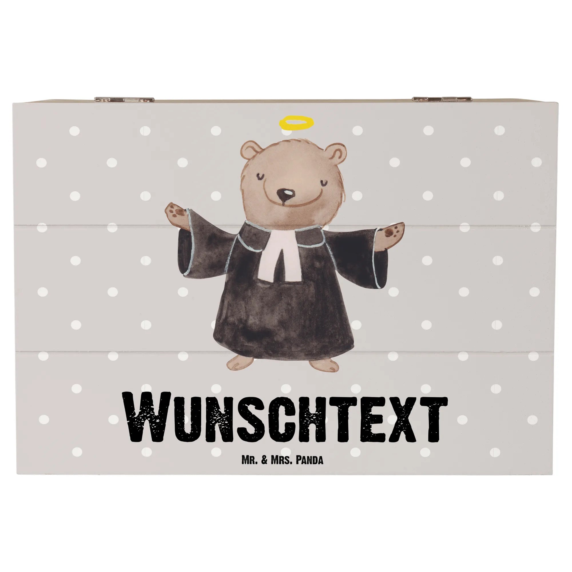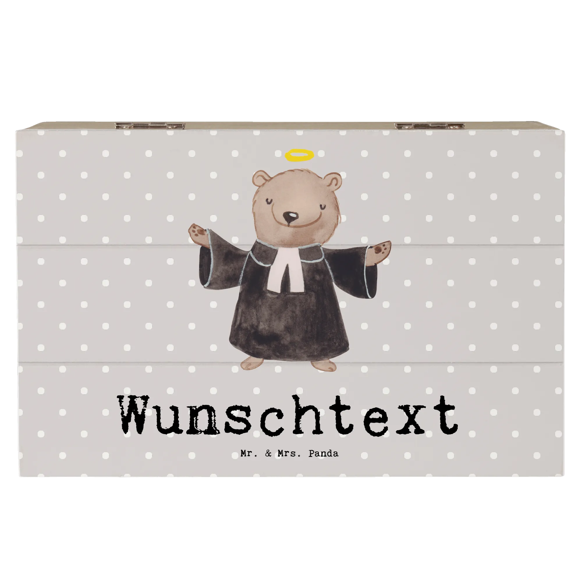 Personalizowane drewniane pudełko pastor serce - 22 x 15 cm - Pastelowy szary