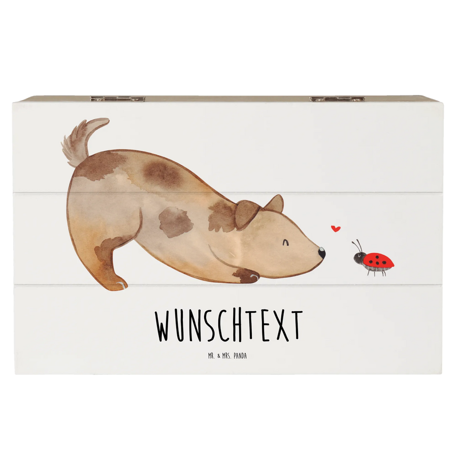 Personalizowane drewniane pudełko pies biedronka - 19 x 12 cm - biały