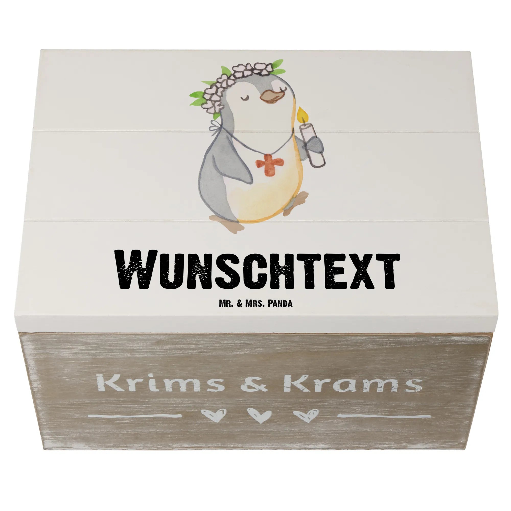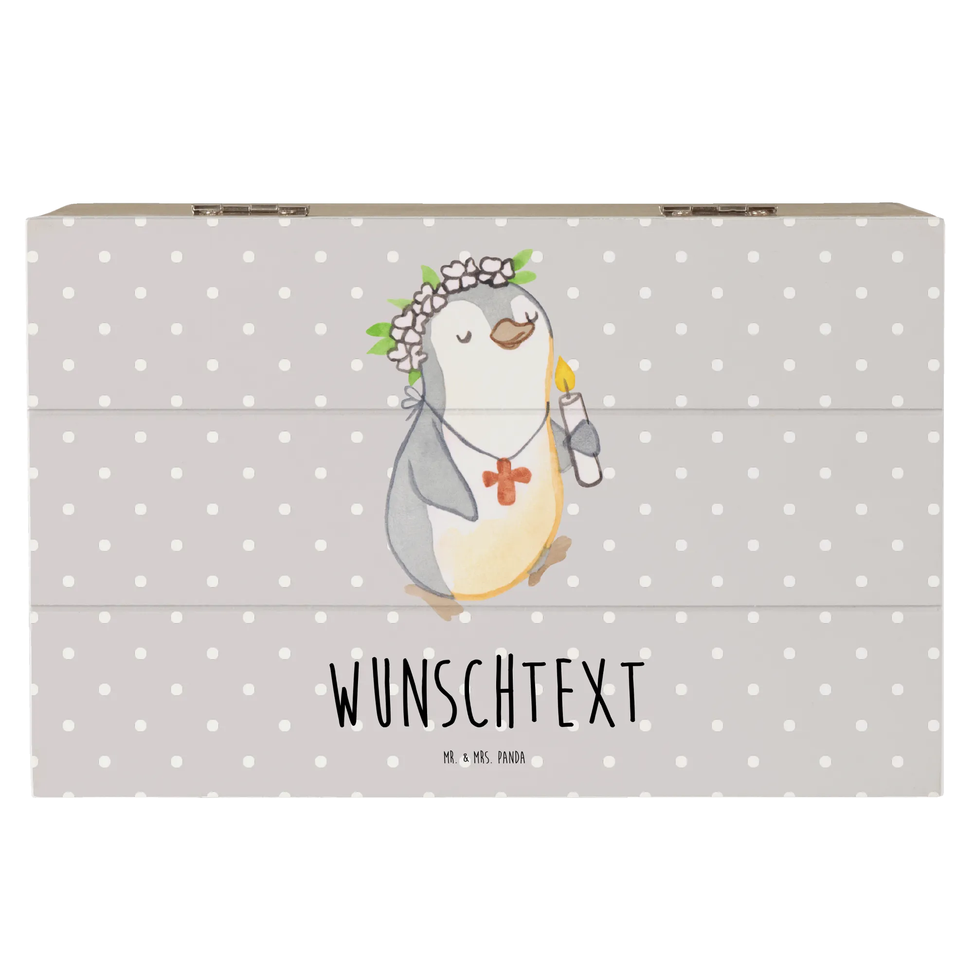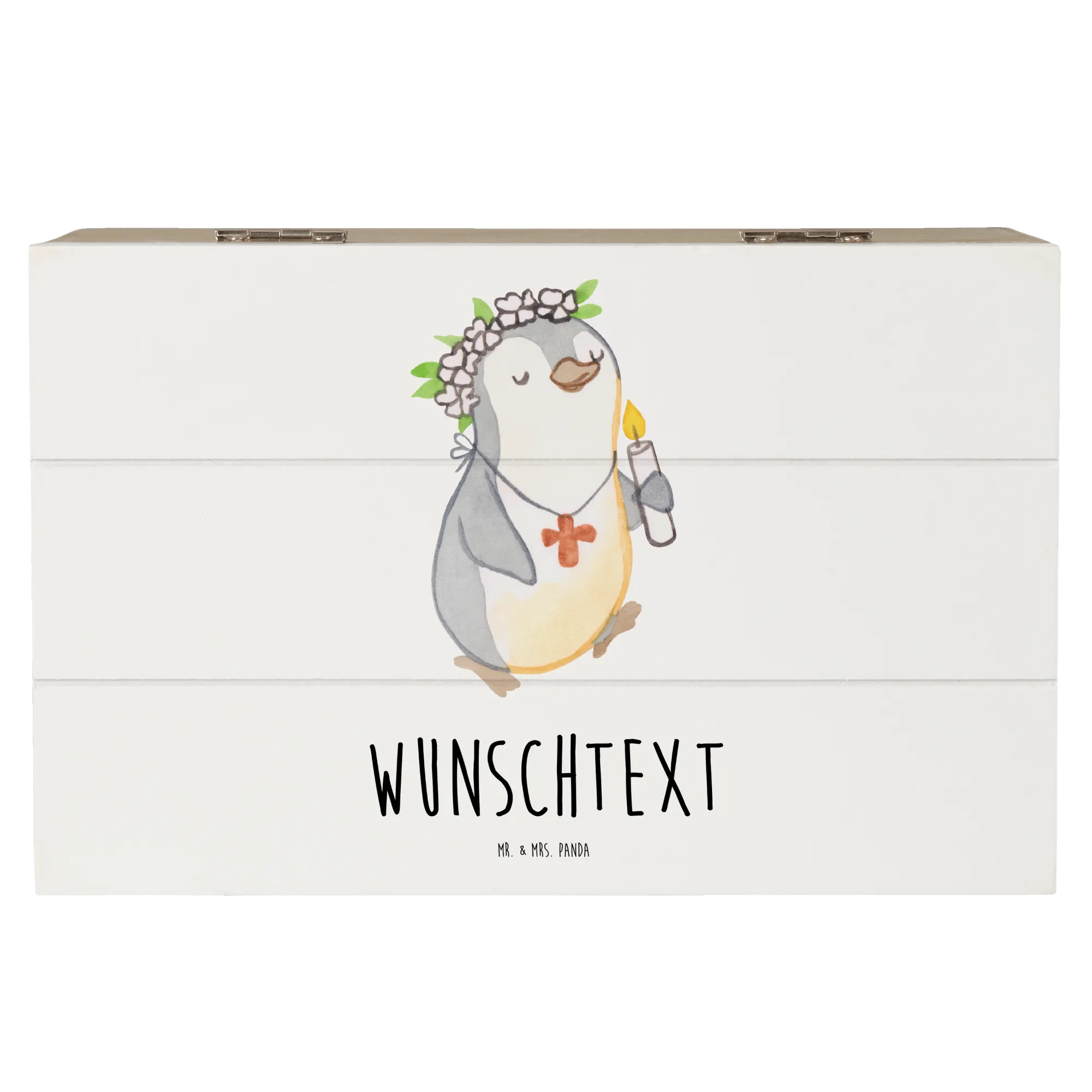 Personalizowane drewniane pudełko Pingwin Dziewczyna komunijna - 19 x 12 cm - biały