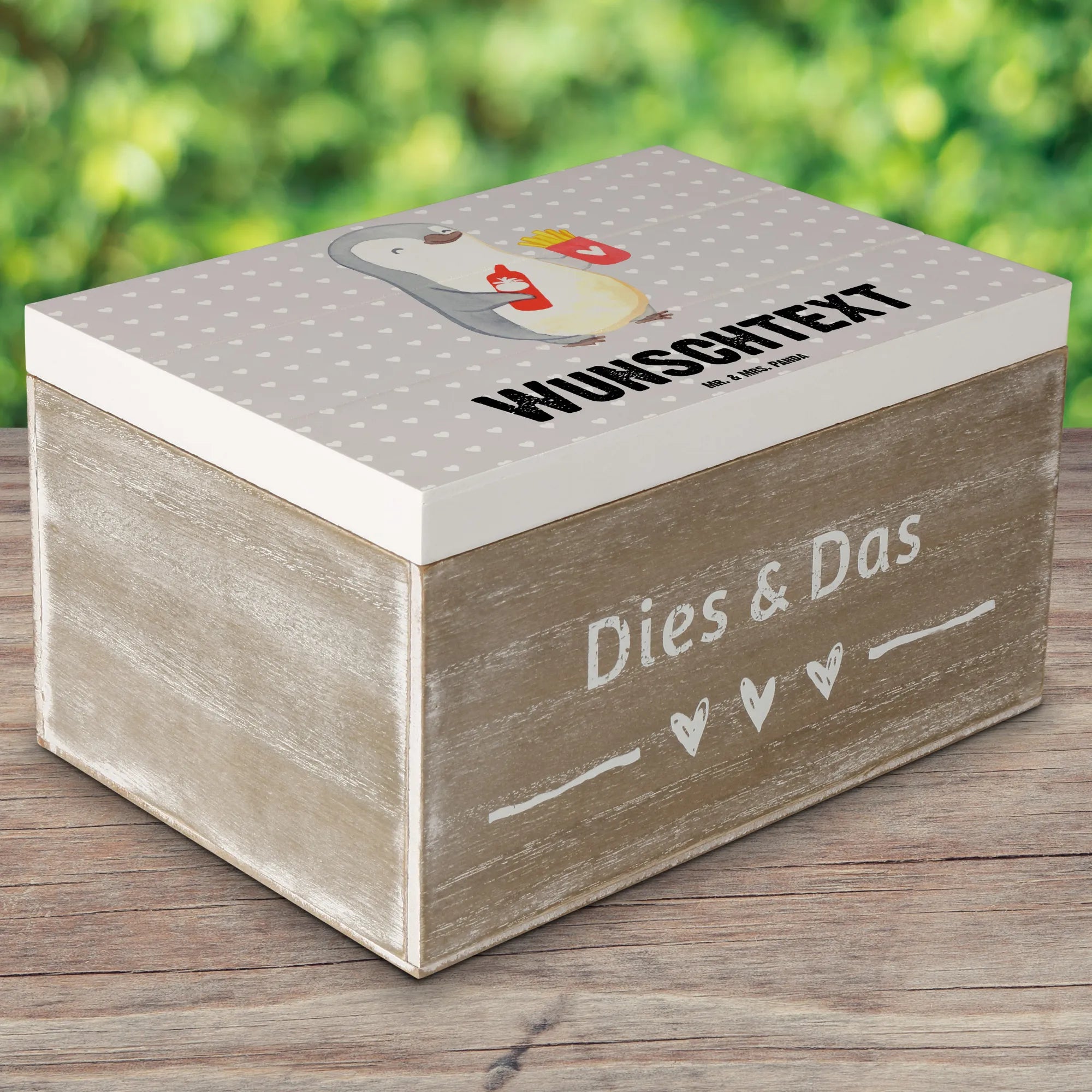 Entdecke die bezaubernde personalisierte Holzkiste Pinguin Pommes von Mr. & Mrs. Panda – das perfekte Geschenk für deinen Partner oder deine Partnerin! Diese einzigartige Schatzkiste ist nicht nur ein wunderschöner Hingucker, sondern auch ein praktischer Aufbewahrungsort für all deine wertvollen Erinnerungen. Egal ob du sie für den Valentinstag, als Liebesgeschenk, zum Hochzeitstag oder einfach nur als liebevolles Mitbringsel verschenken möchtest, diese Kiste wird garantiert Herzen höher schlagen lassen.
