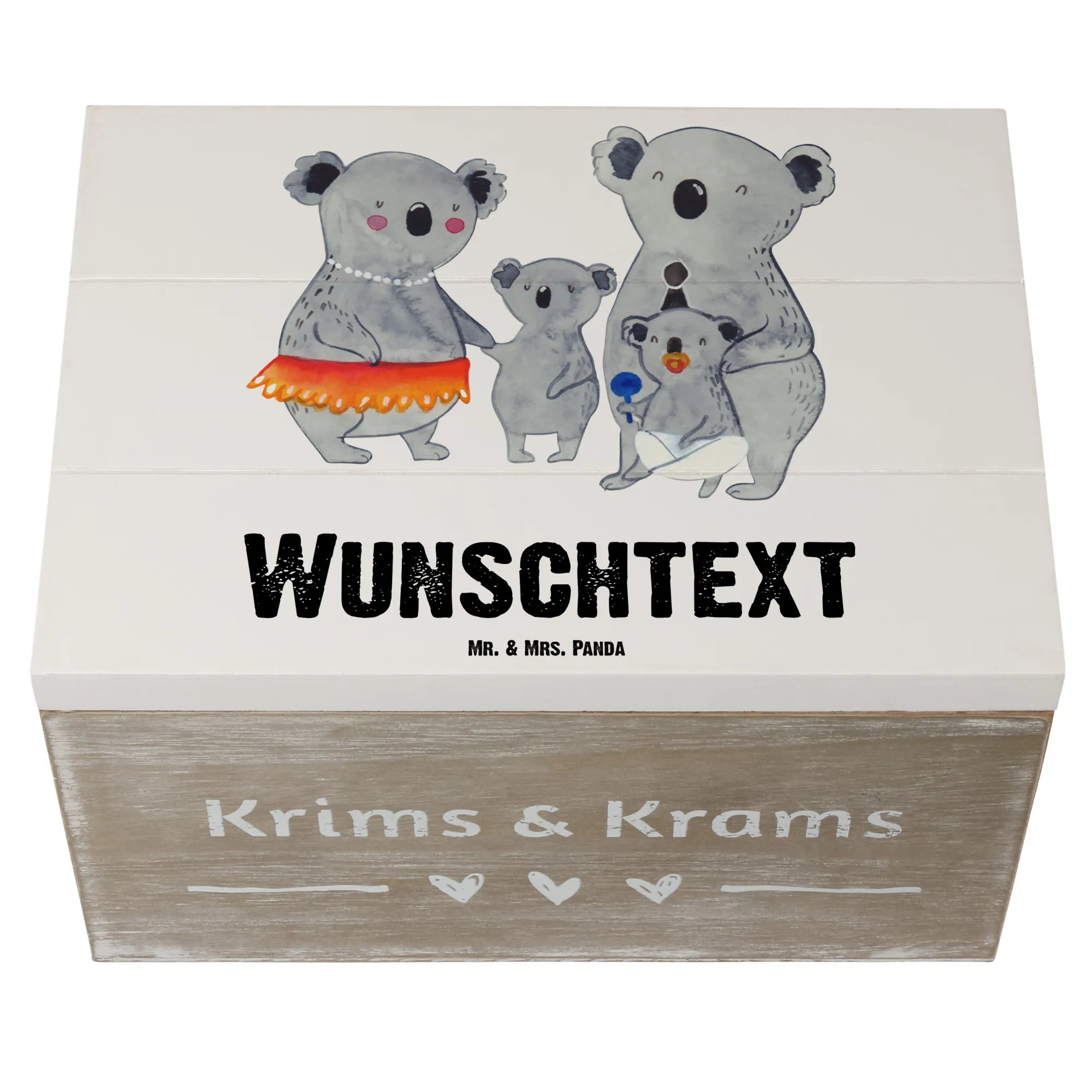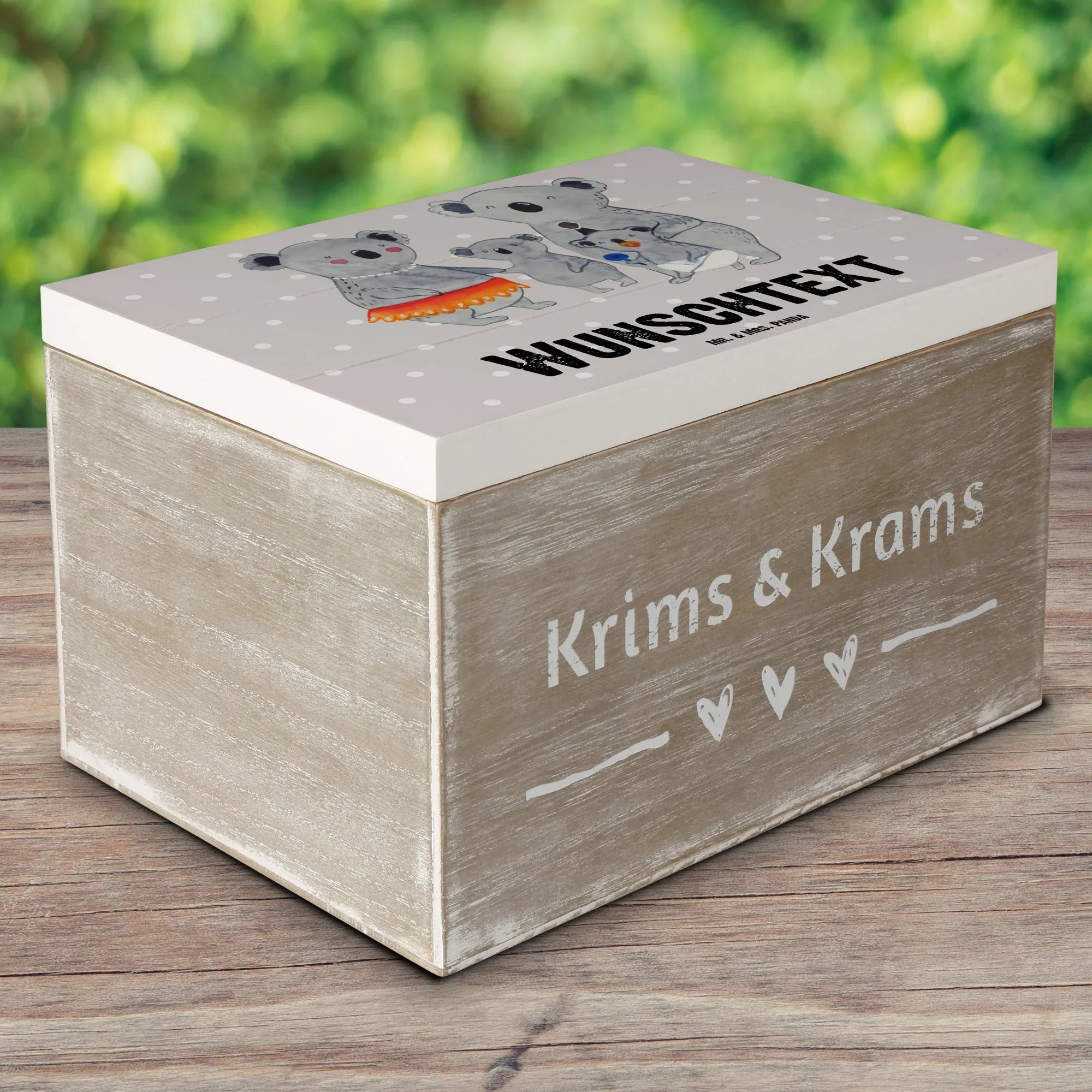 Personalizowane drewniane pudełko Rodzina koali - 22 x 15 cm - biały