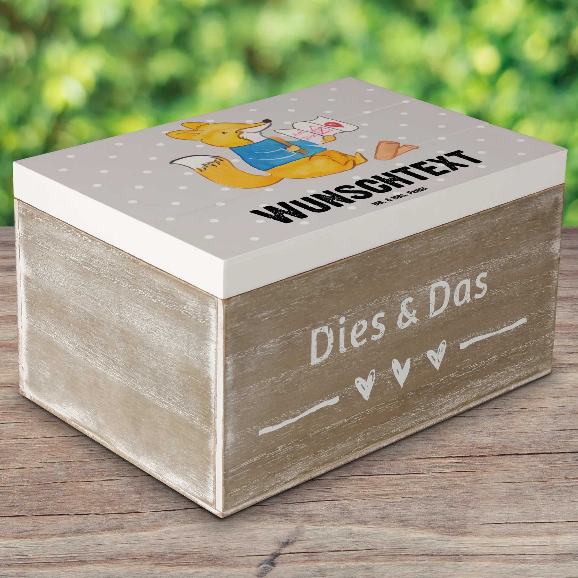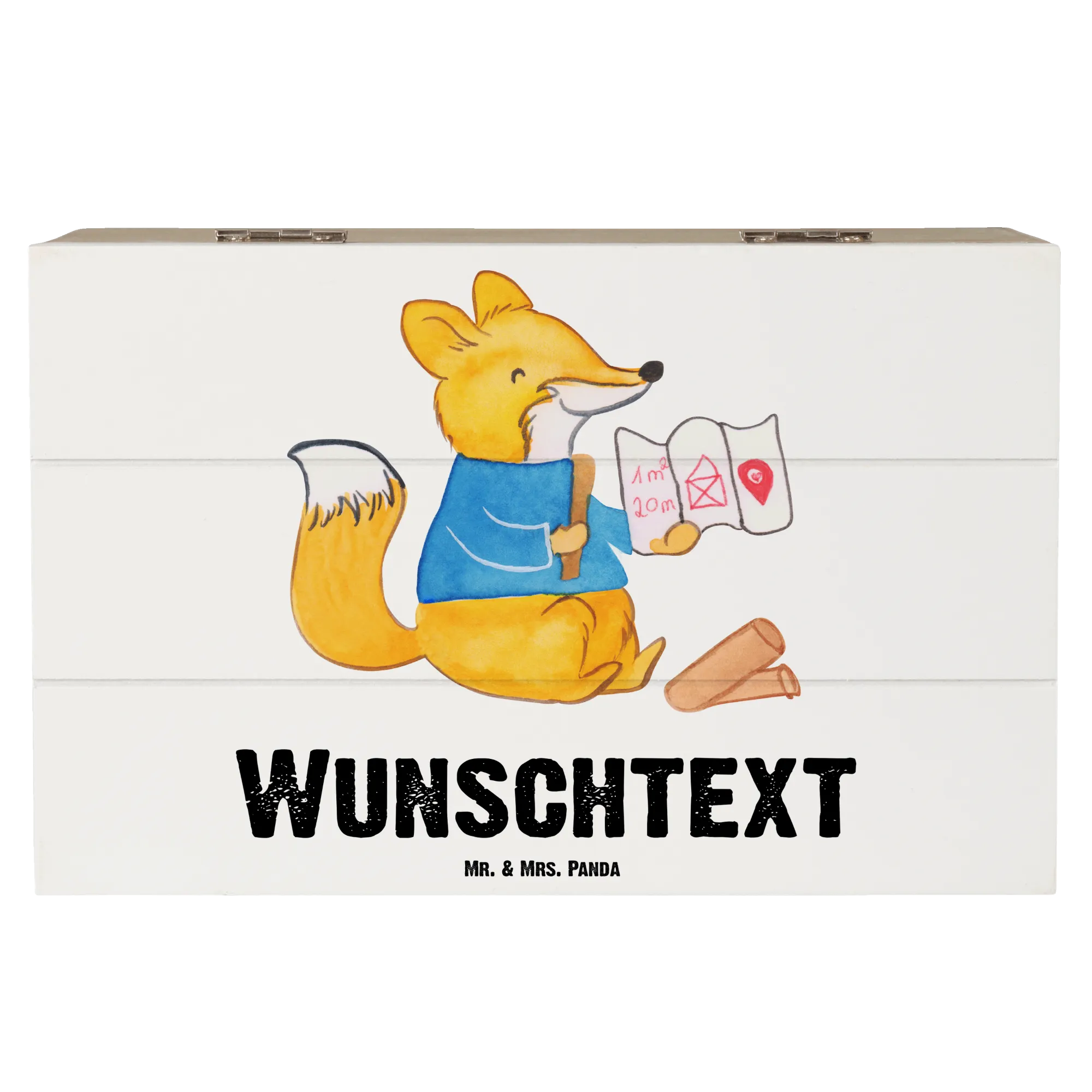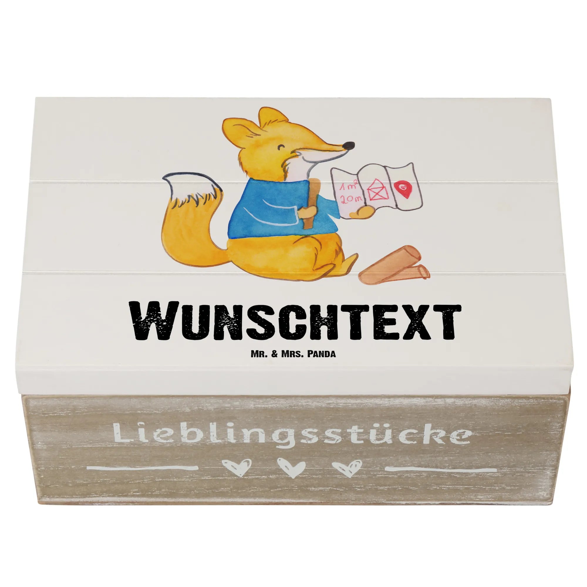 Personalizowane drewniane pudełko rysownik budowlany serce - 19 x 12 cm - biały