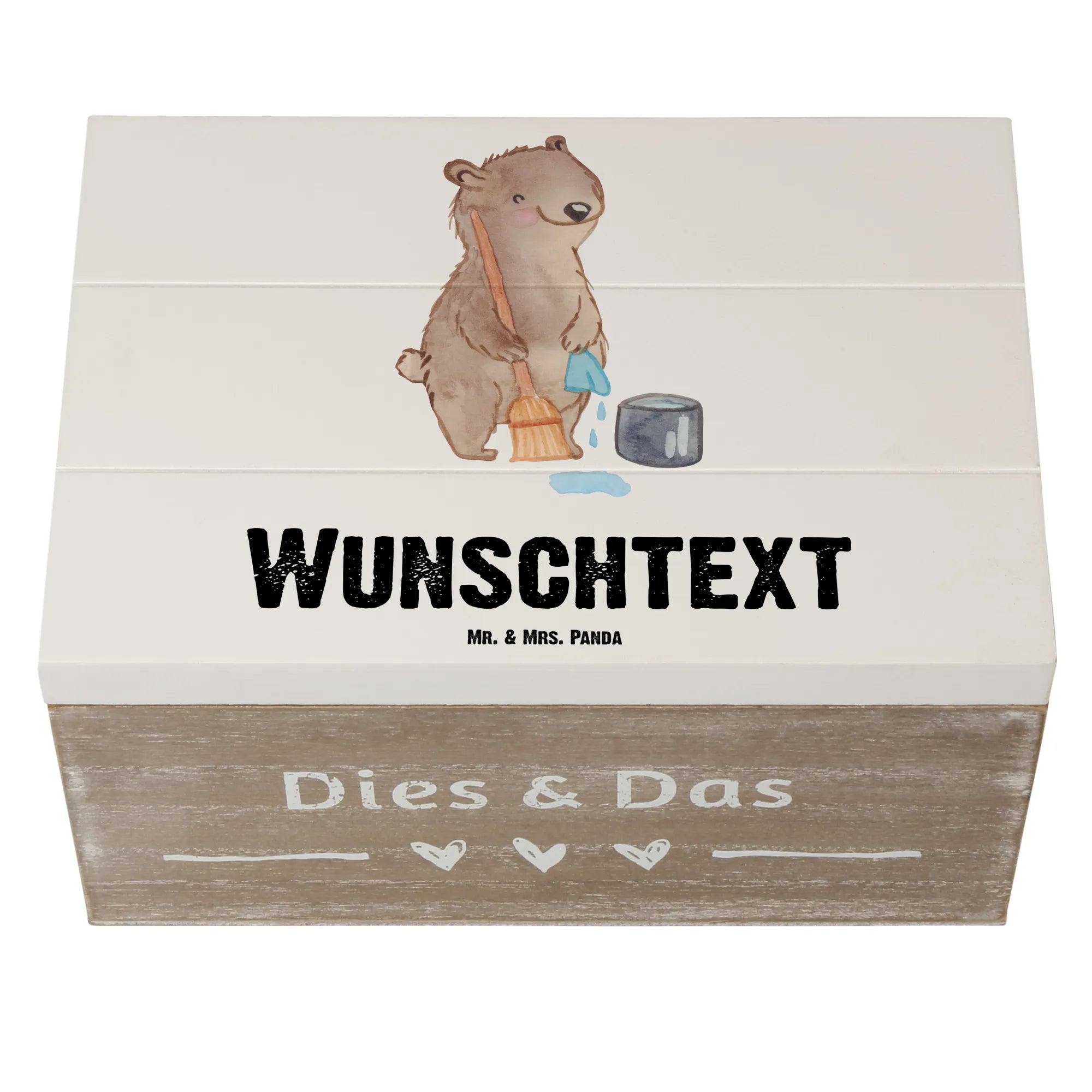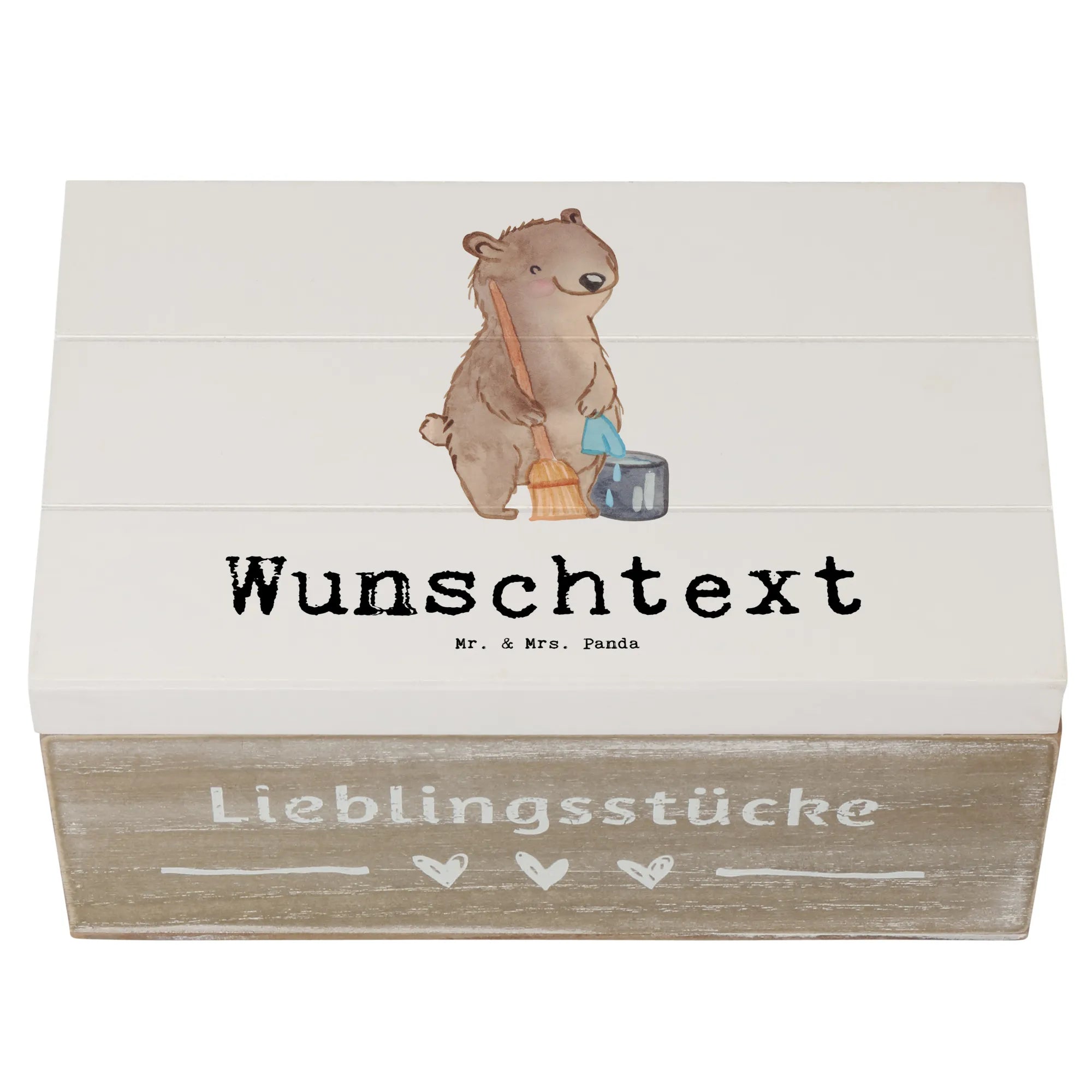Personalizowane drewniane pudełko sprzątaczka Serce - 22 x 15 cm - biały