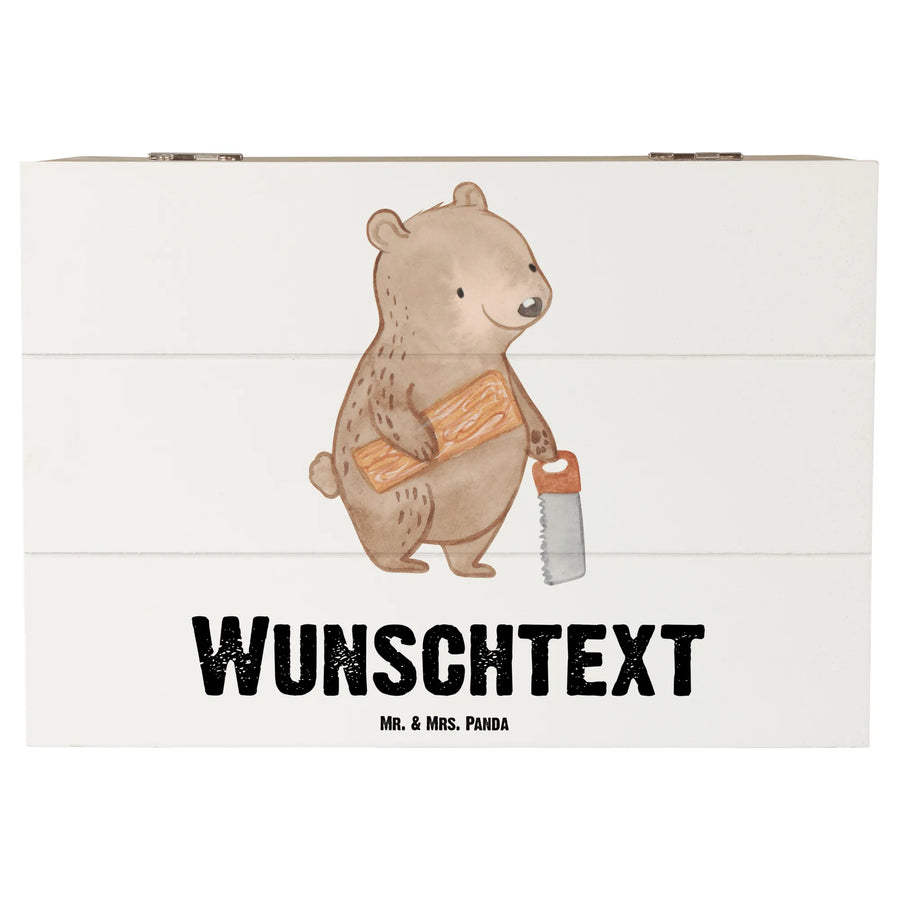 Personalizowane drewniane pudełko Stolarz serce - 22 x 15 cm - biały