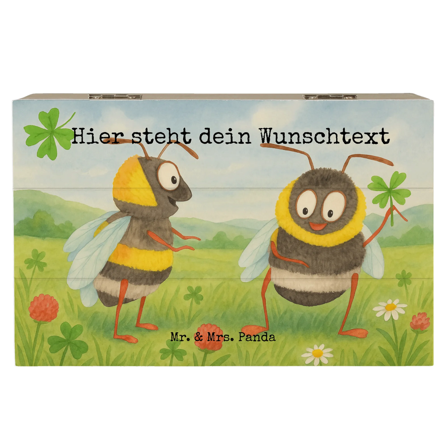 Personalizowane drewniane pudełko Trzmiele koniczyna Design - 19 x 12 cm