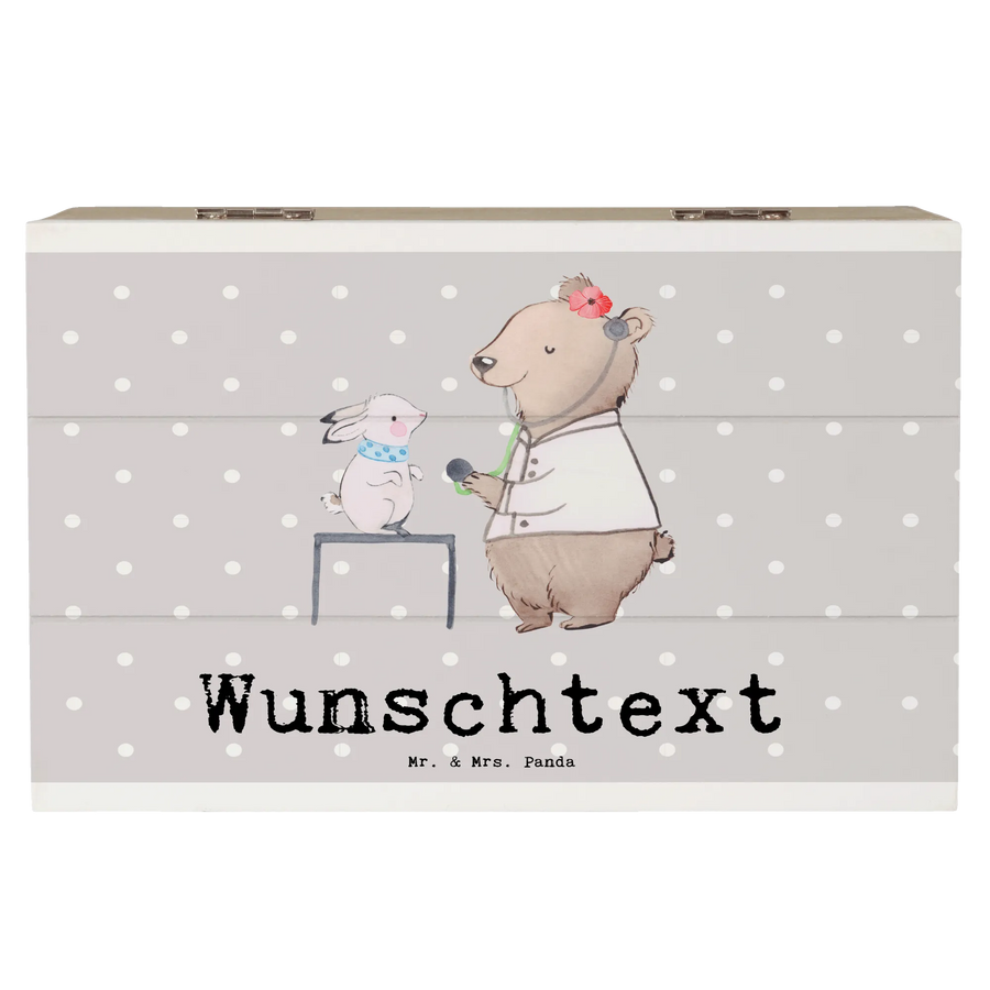 Personalizowane drewniane pudełko weterynarka Serce - 19 x 12 cm - Pastelowy szary