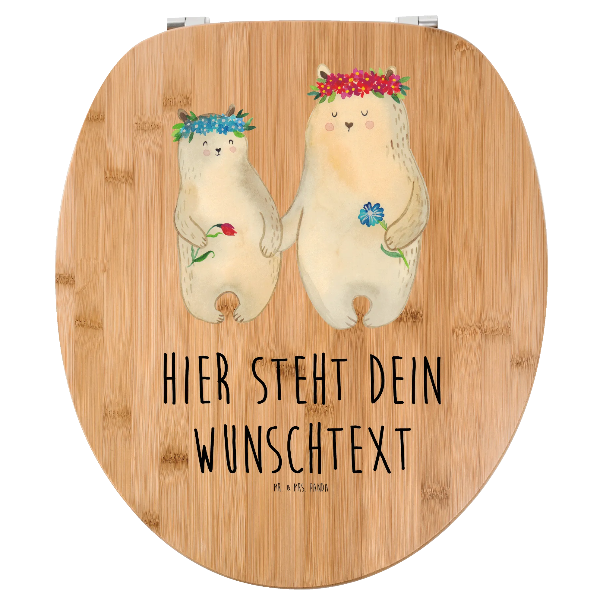 Personalizowany motyw deski WC Niedźwiedzie z wianuszkiem - Bambus
