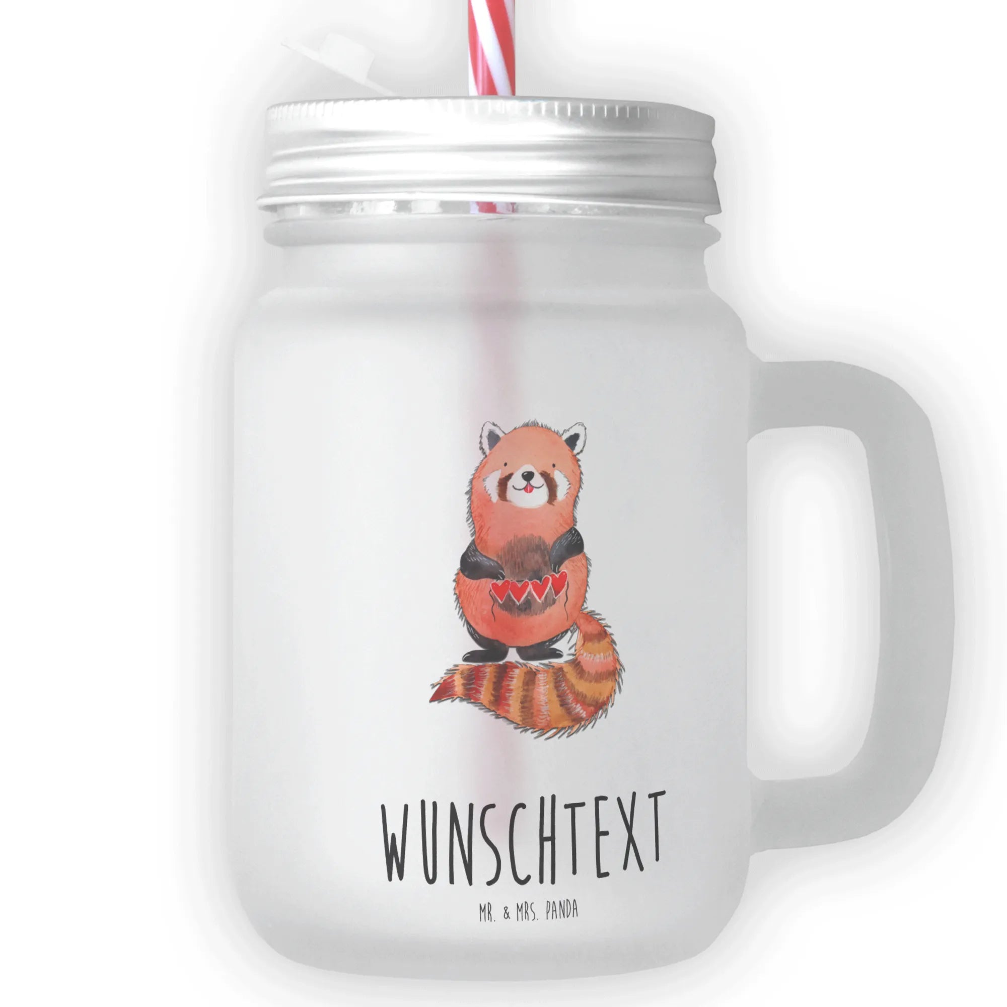 Personalizowany szklany słoik Mason Jar Czerwony Panda