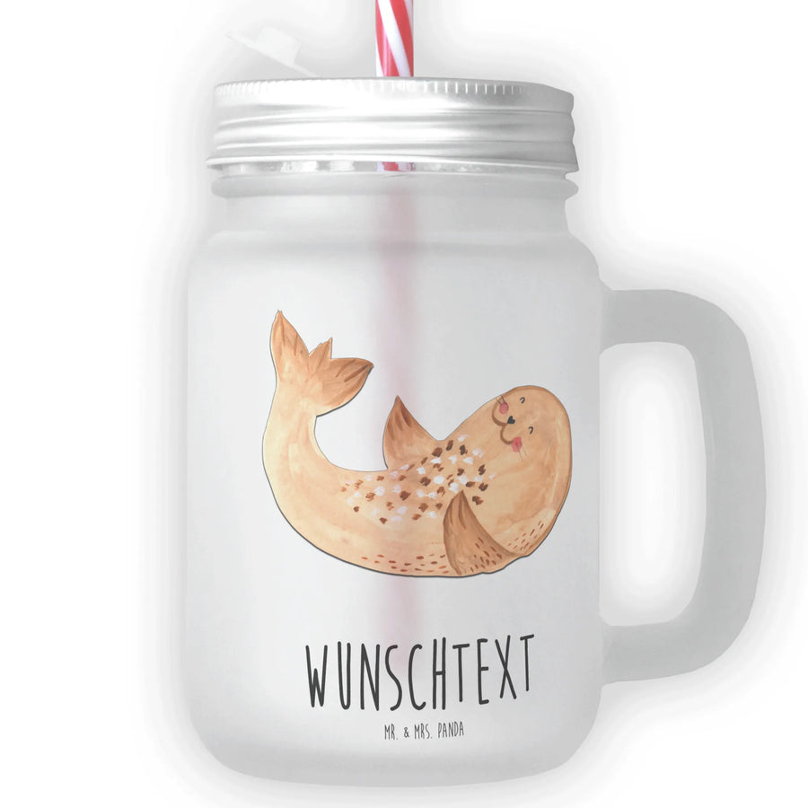 Personalizowany szklany słoik Mason Jar foka Leżeć