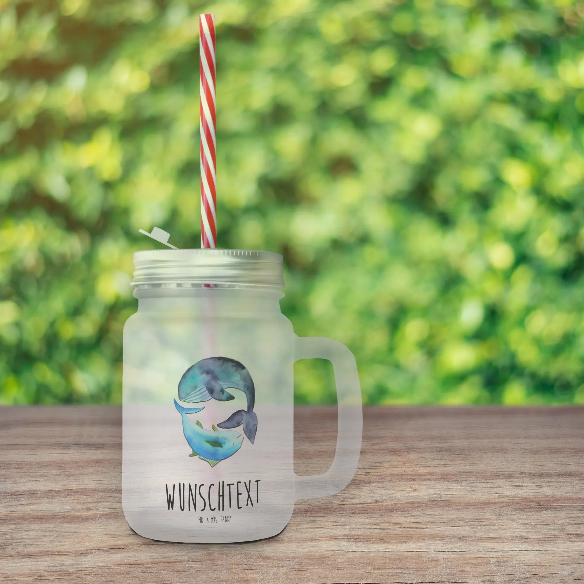 Personalizowany szklany słoik Mason Jar wieloryb tuńczyk