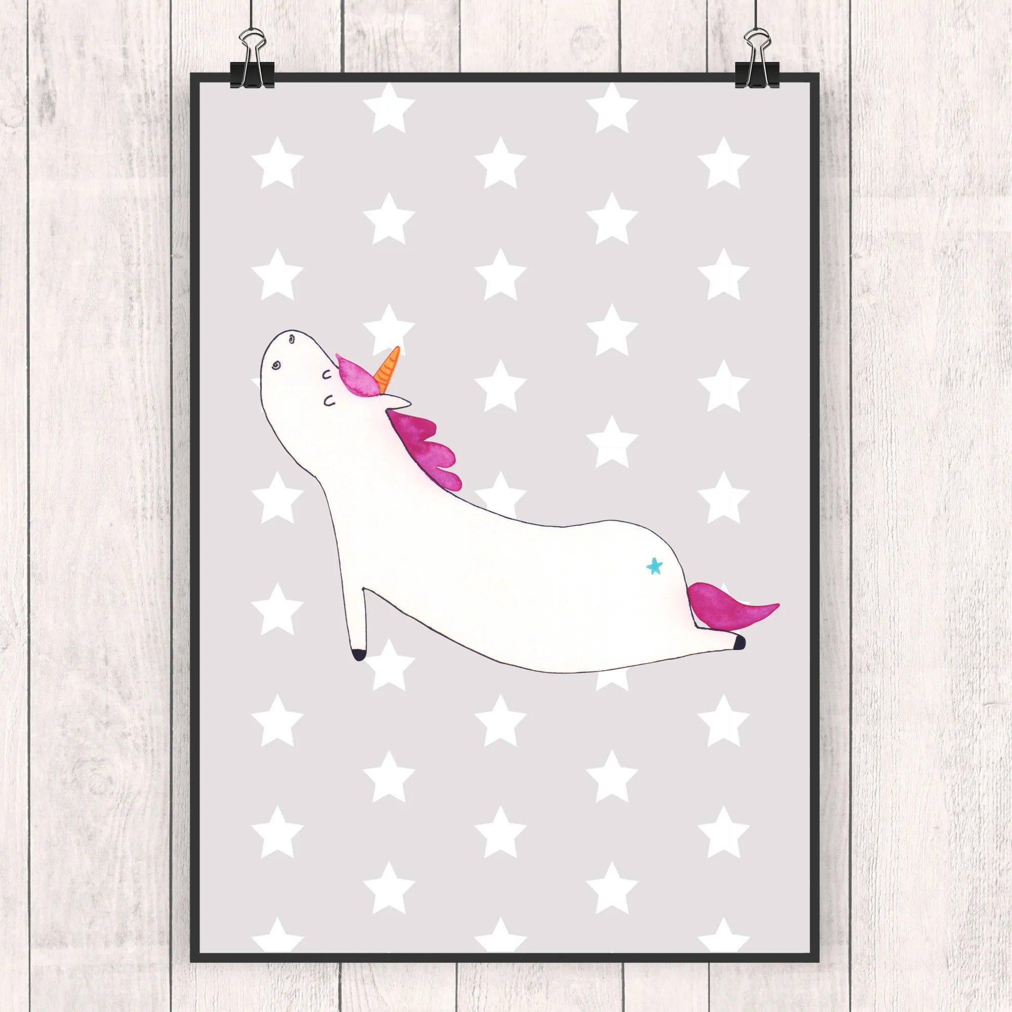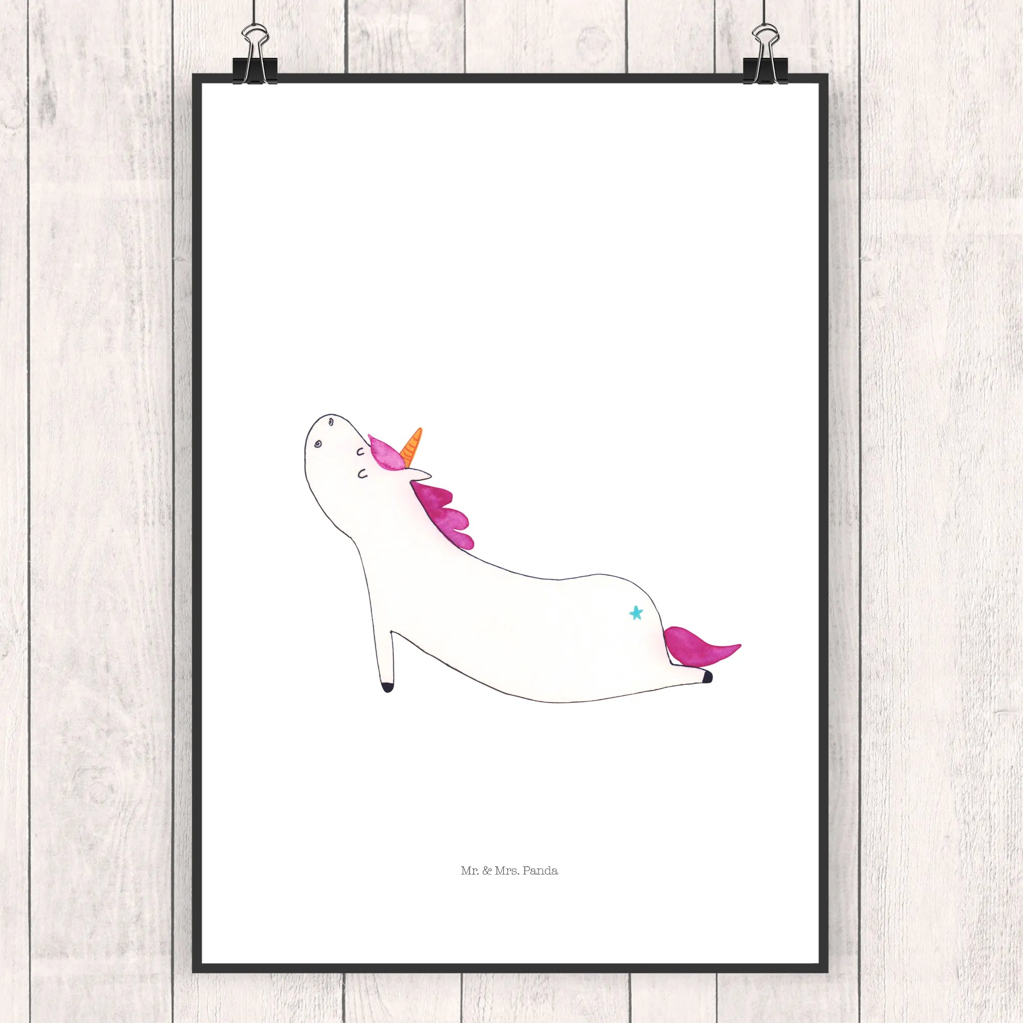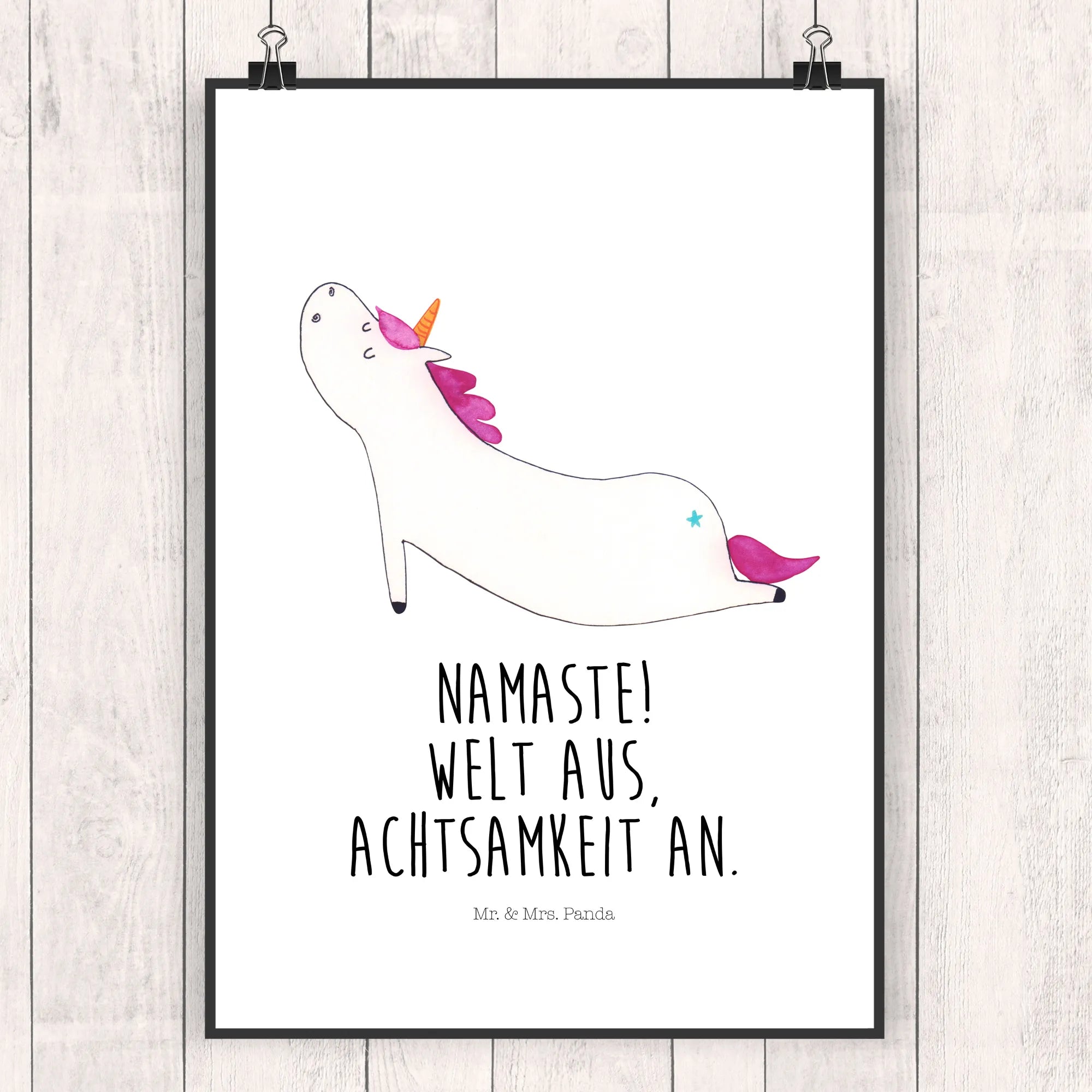 Plakat jednorożec joga - DIN A0 - z napisem - biały