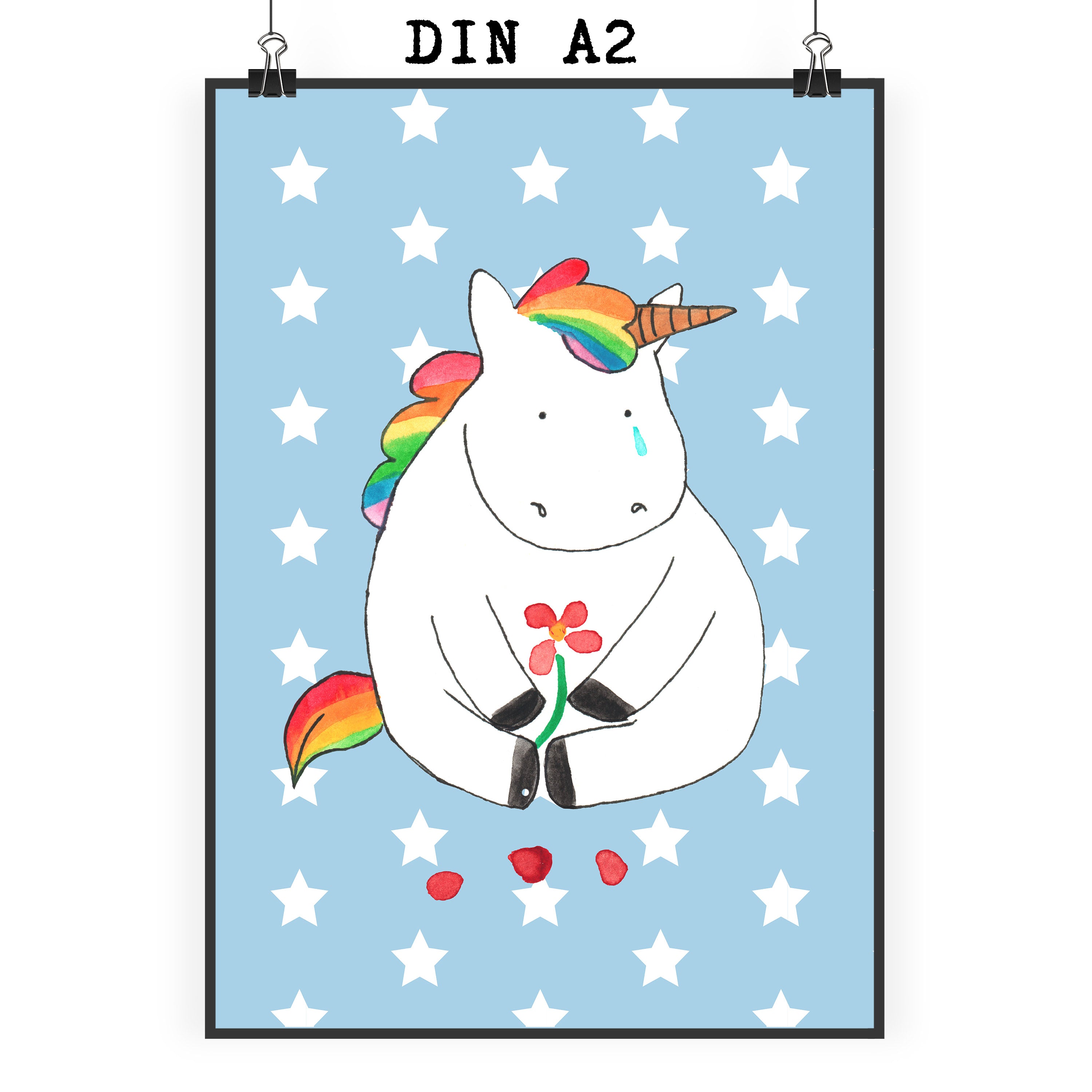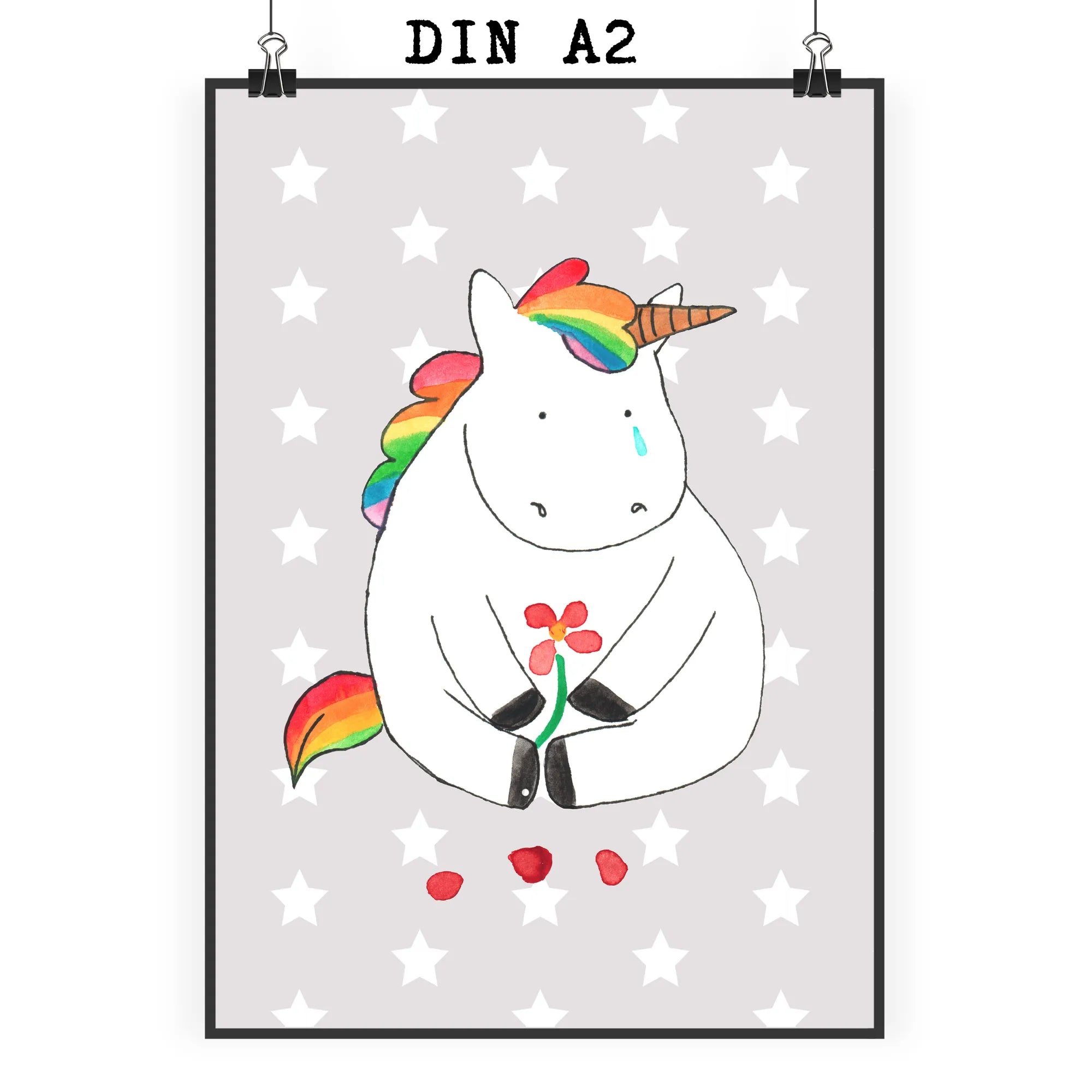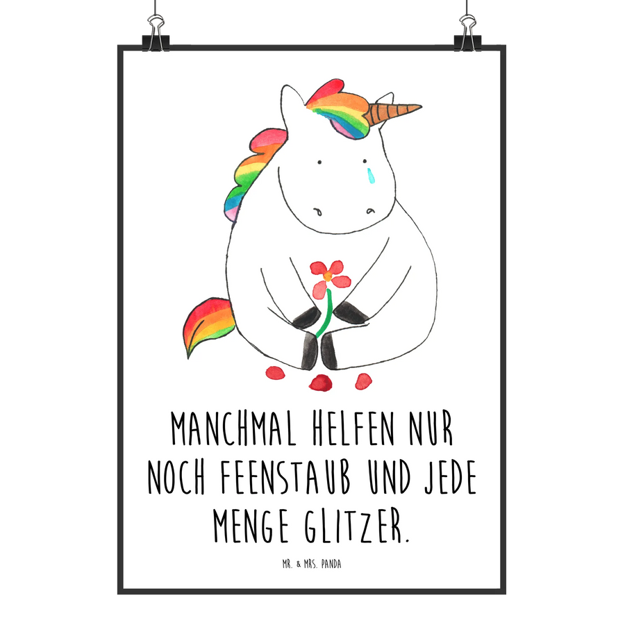 Plakat Jednorożec Smutny - DIN A0 - z napisem - biały