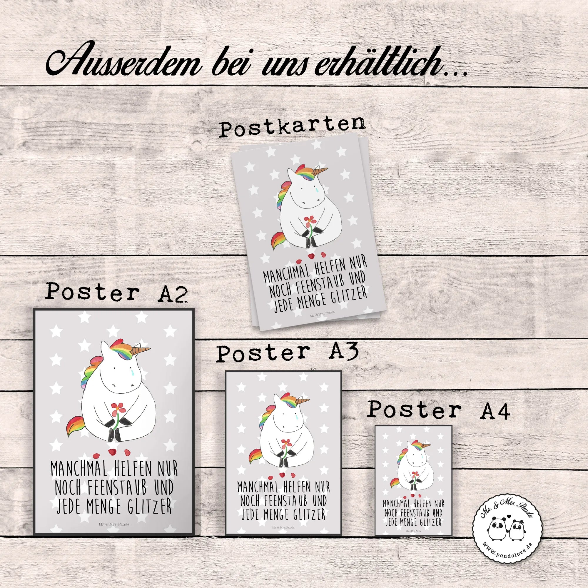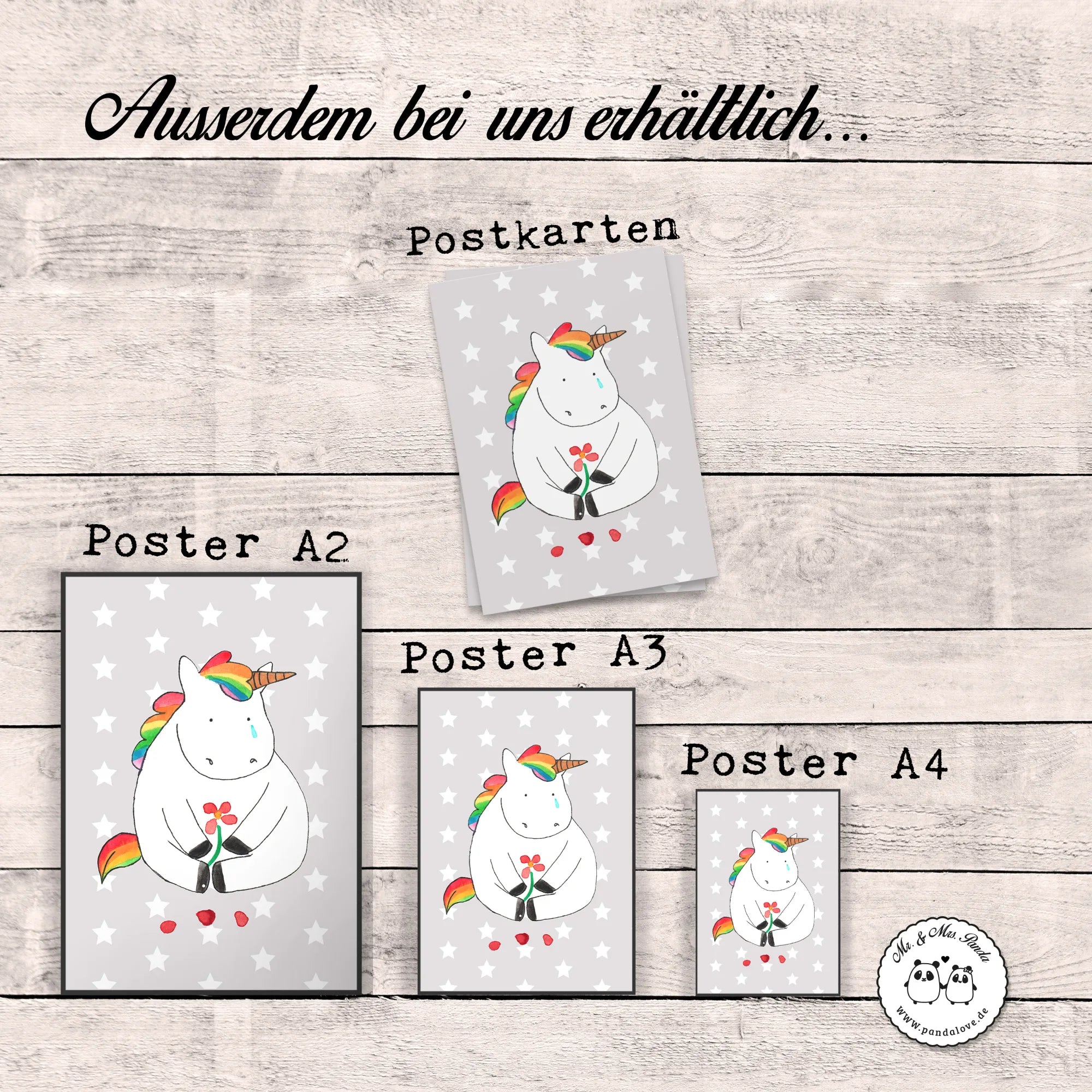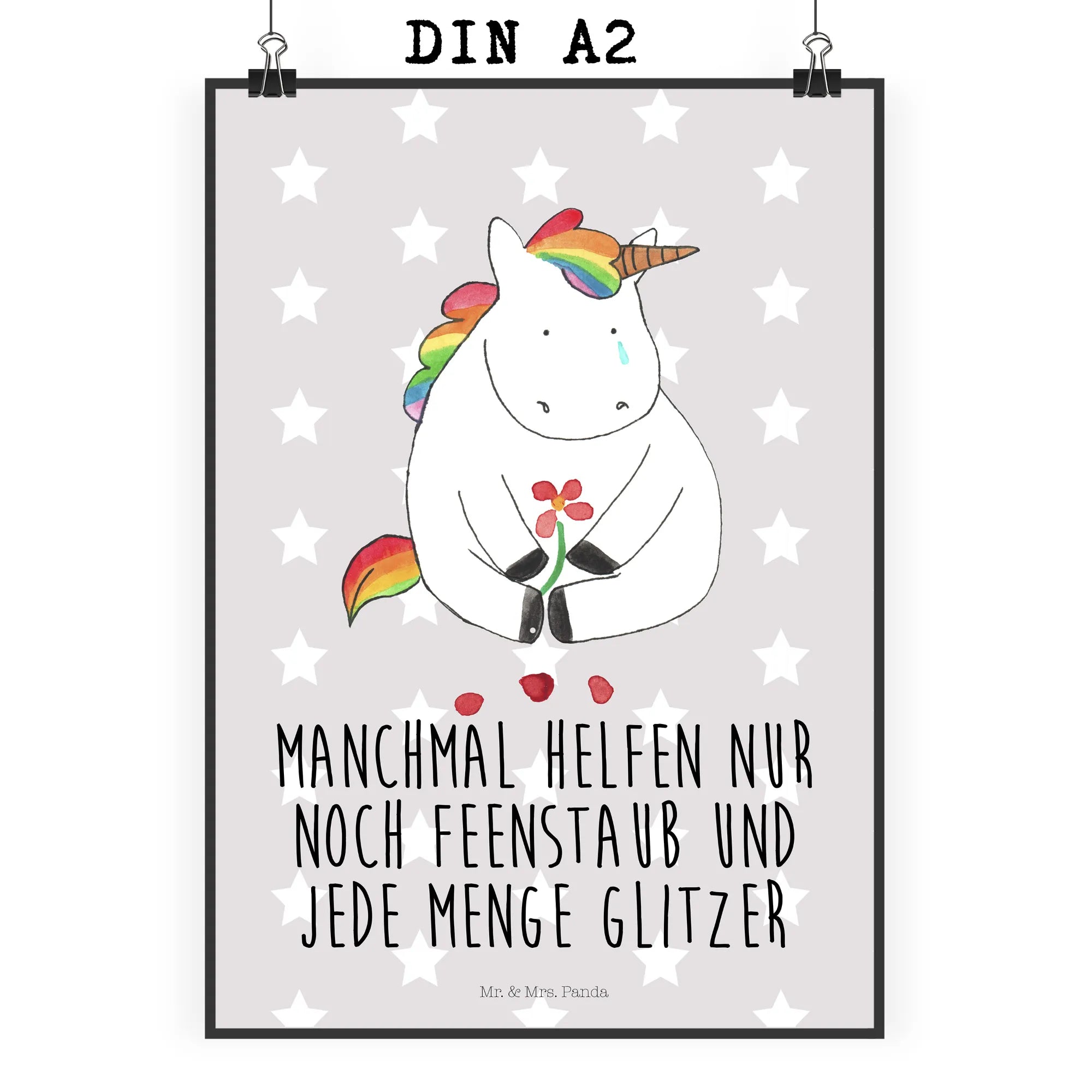 Plakat Jednorożec Smutny - DIN A0 - z napisem - biały
