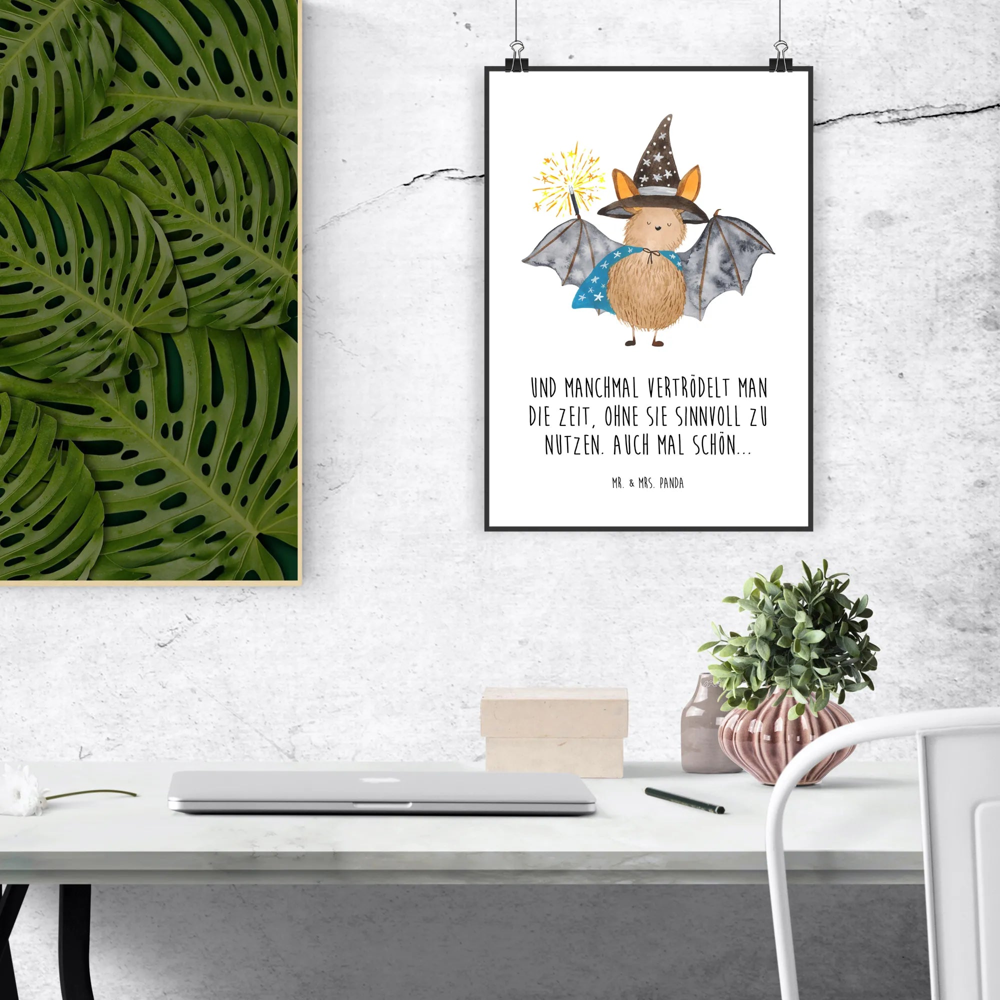 Plakat Nietoperz czarodziej - DIN A0 - z napisem - biały