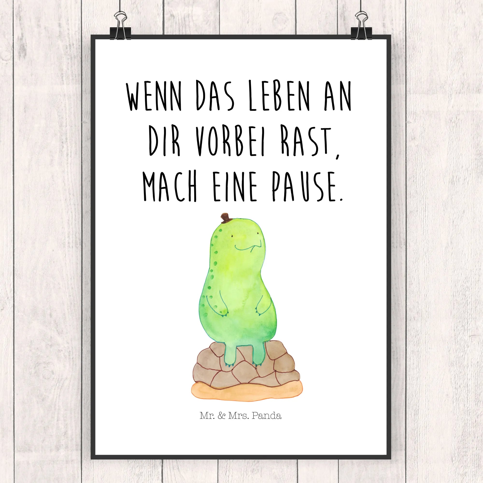 Plakat żółw Przerwa - DIN A0 - z napisem - biały