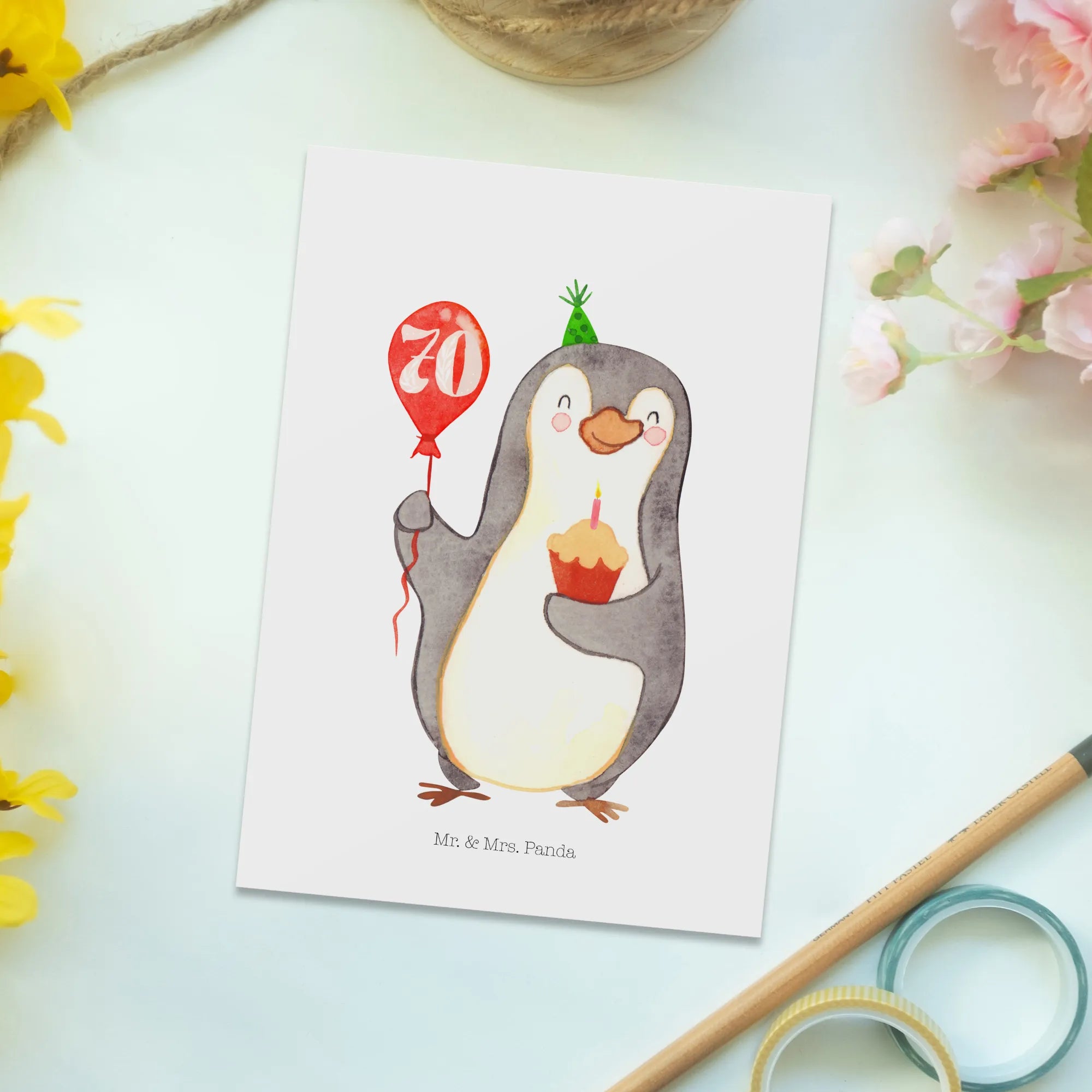 Pocztówka 70. urodziny Pingwin z balonem - z napisem