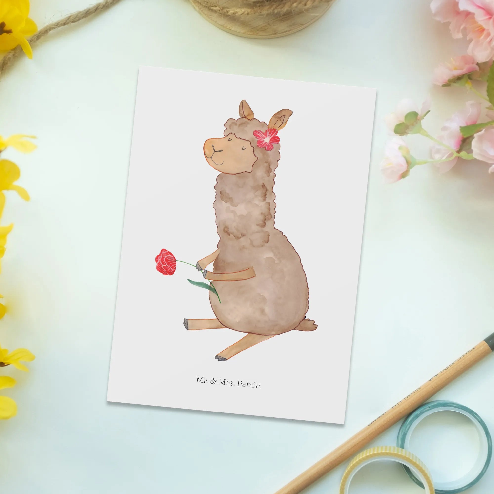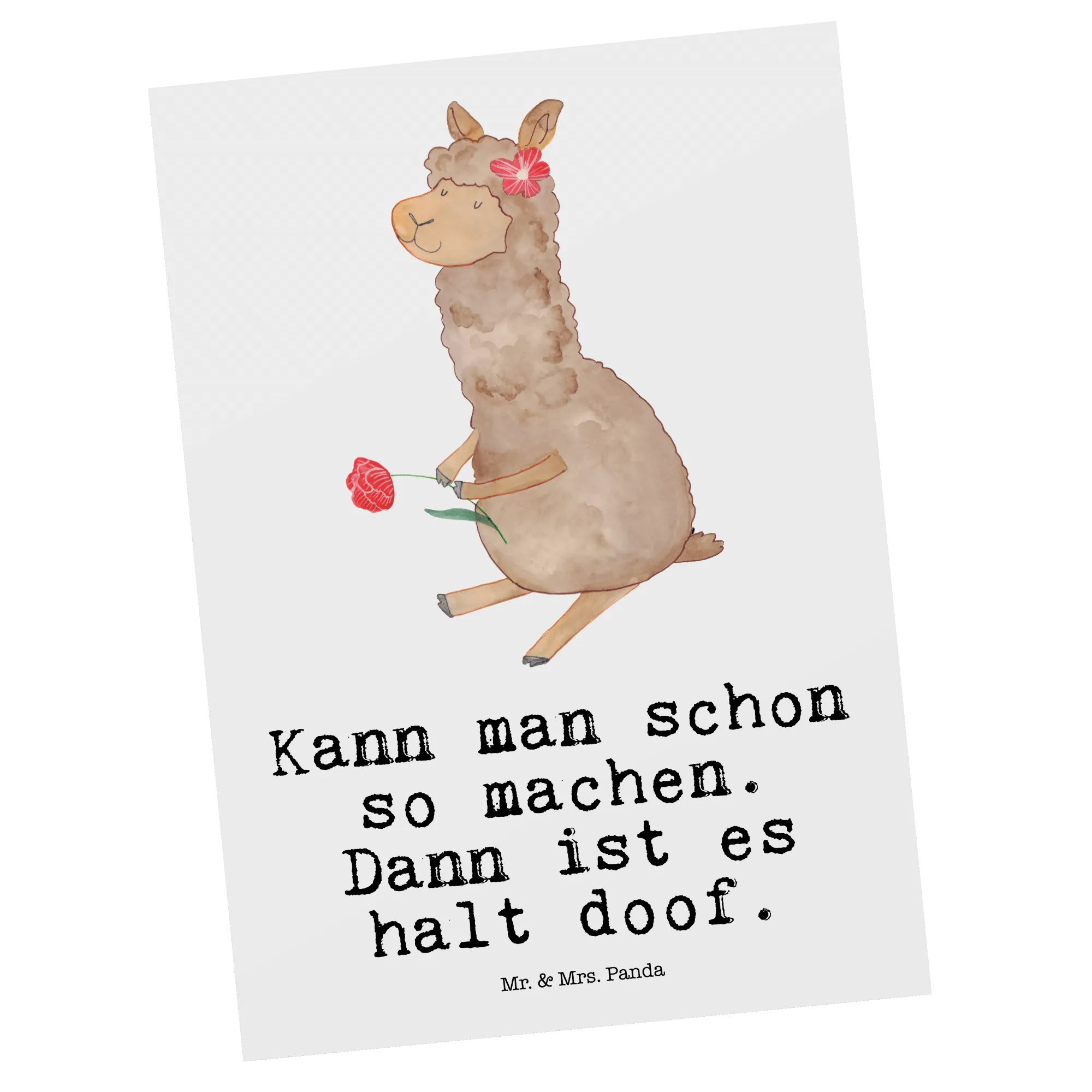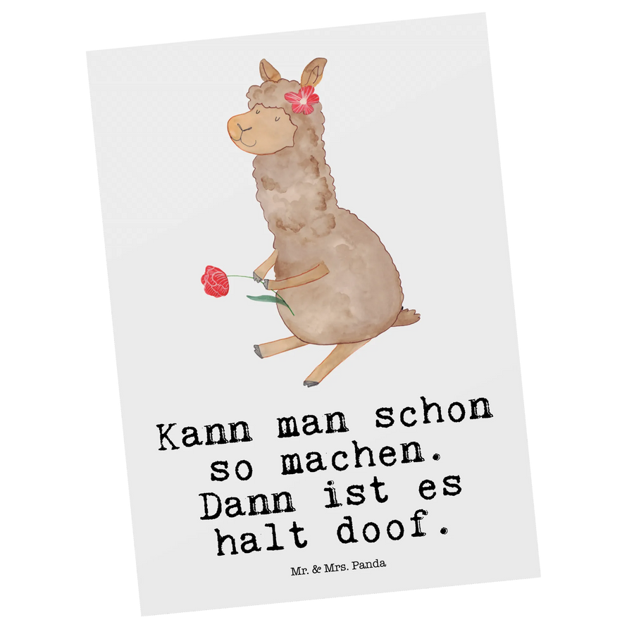 Pocztówka alpaka kwiat - z napisem - biały