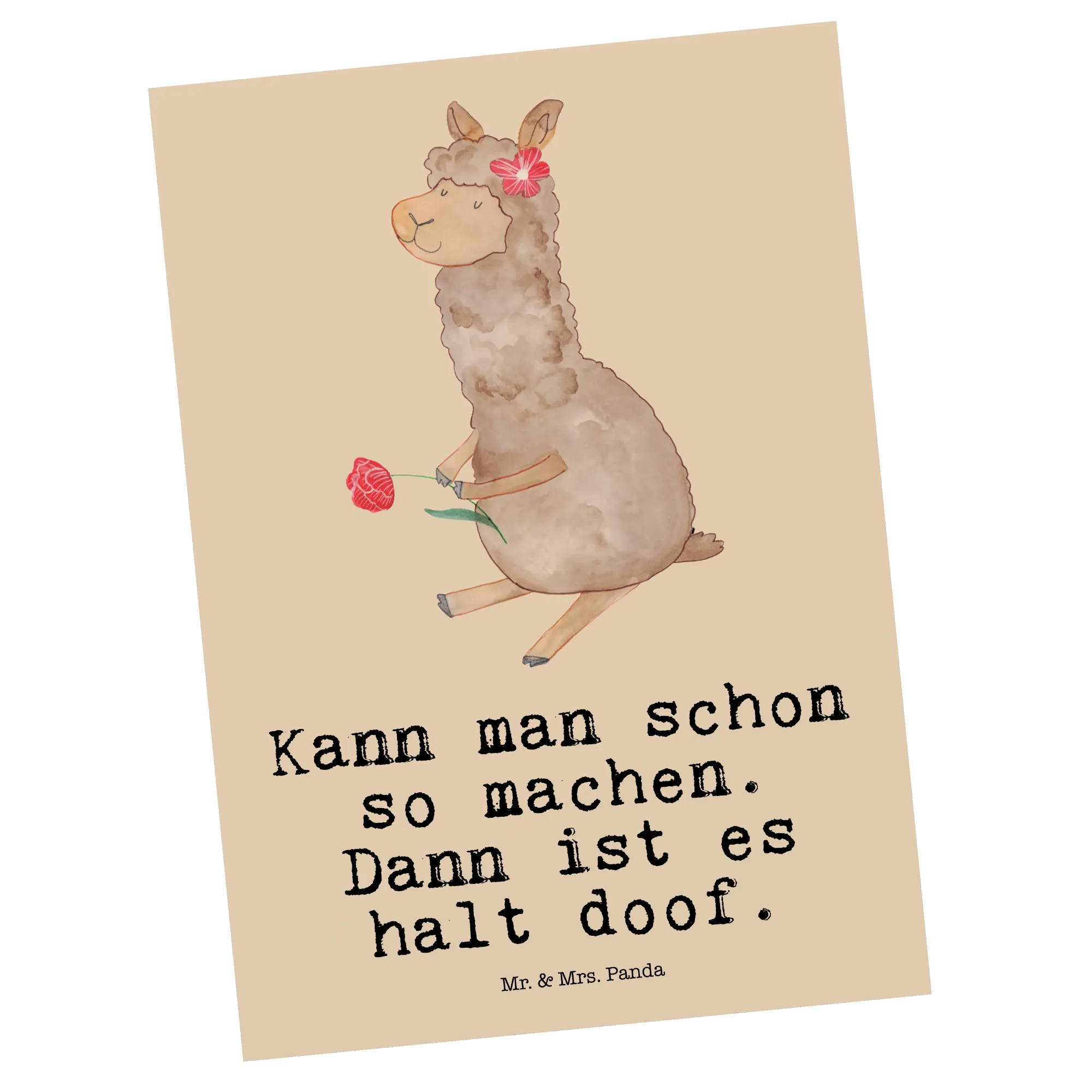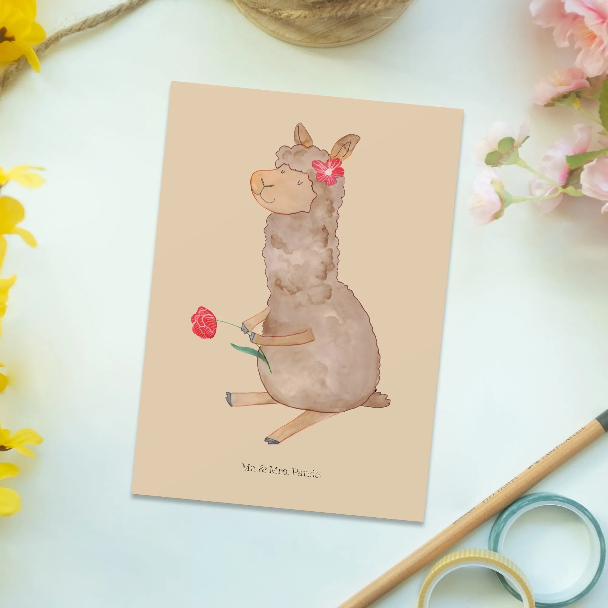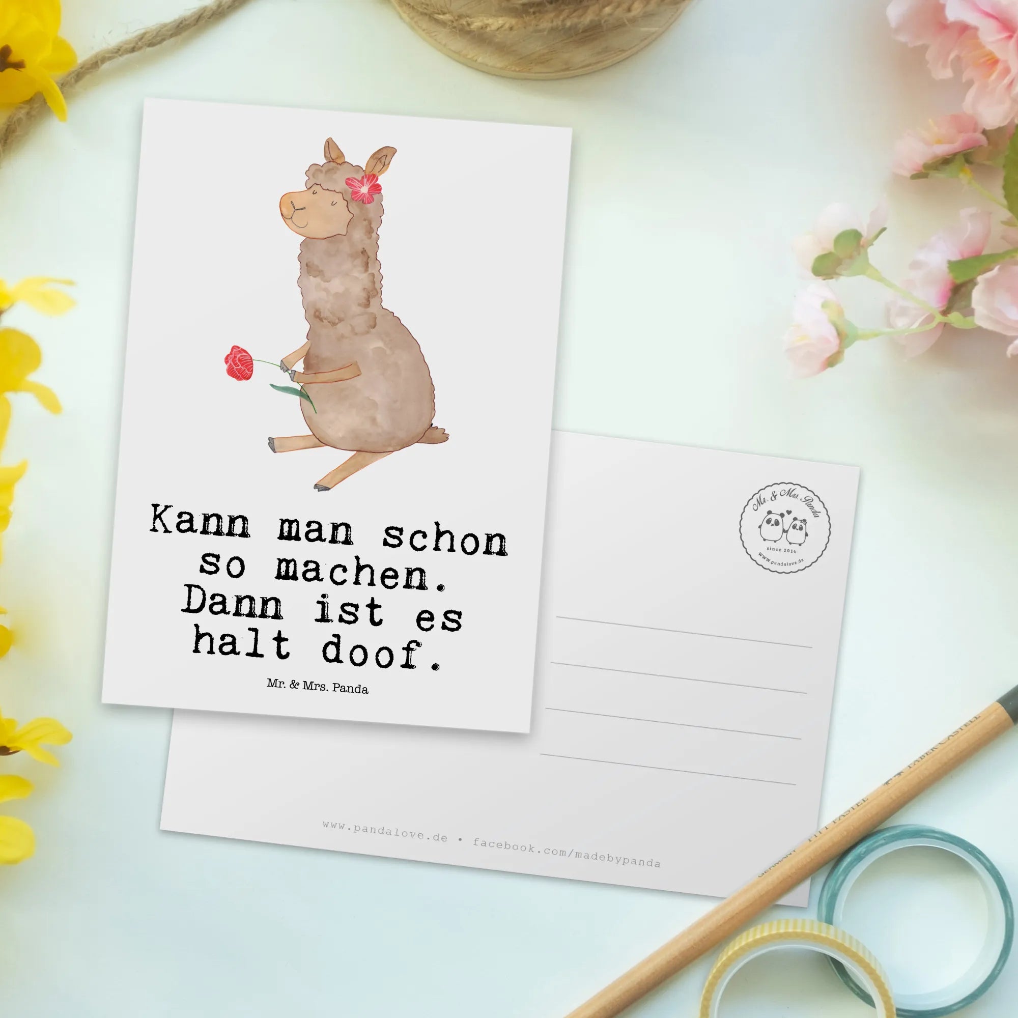 Pocztówka alpaka kwiat - z napisem - biały