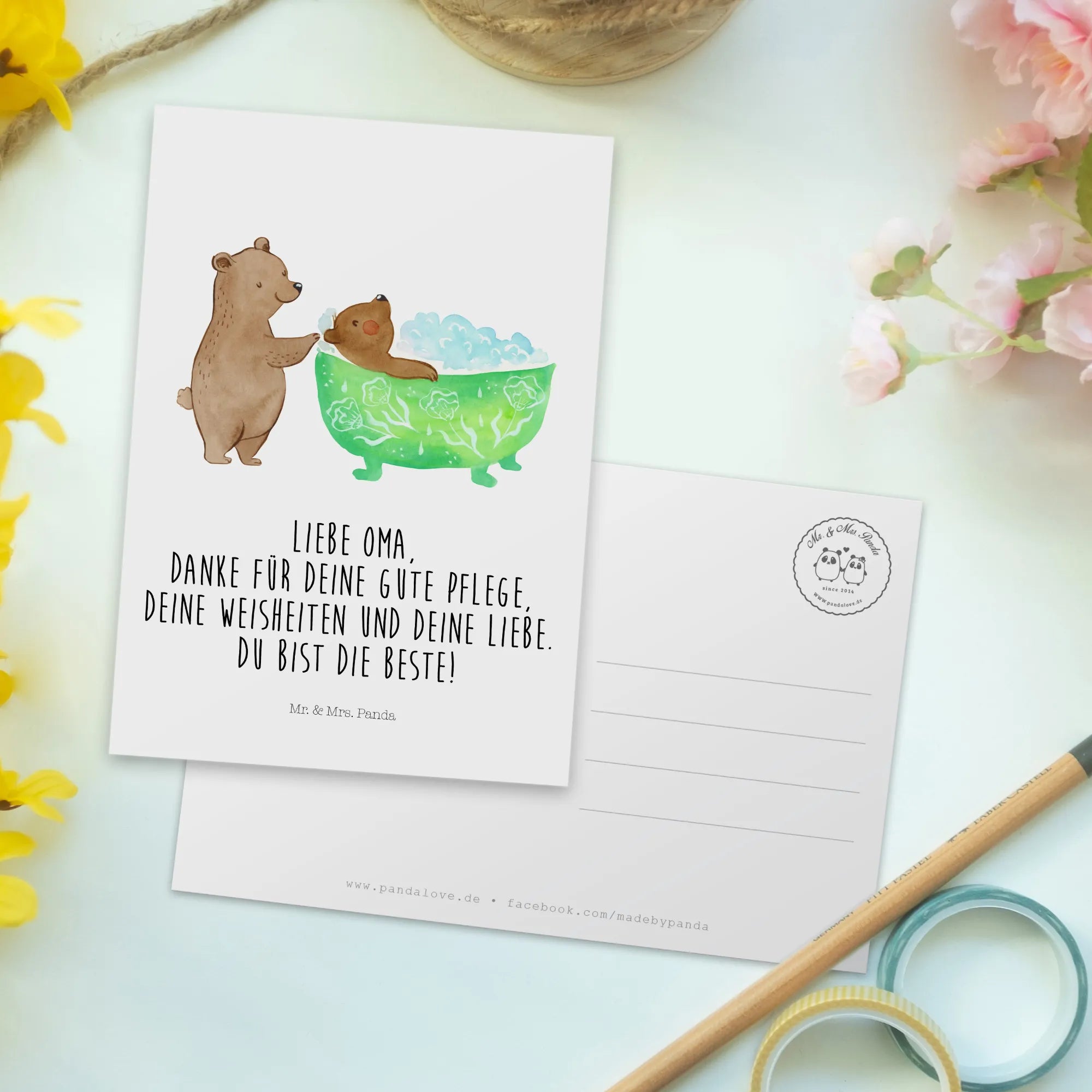 Pocztówka Babcia kąpiel - z napisem - Biały